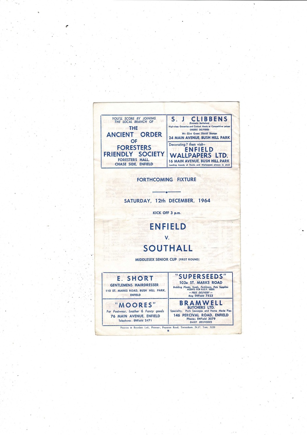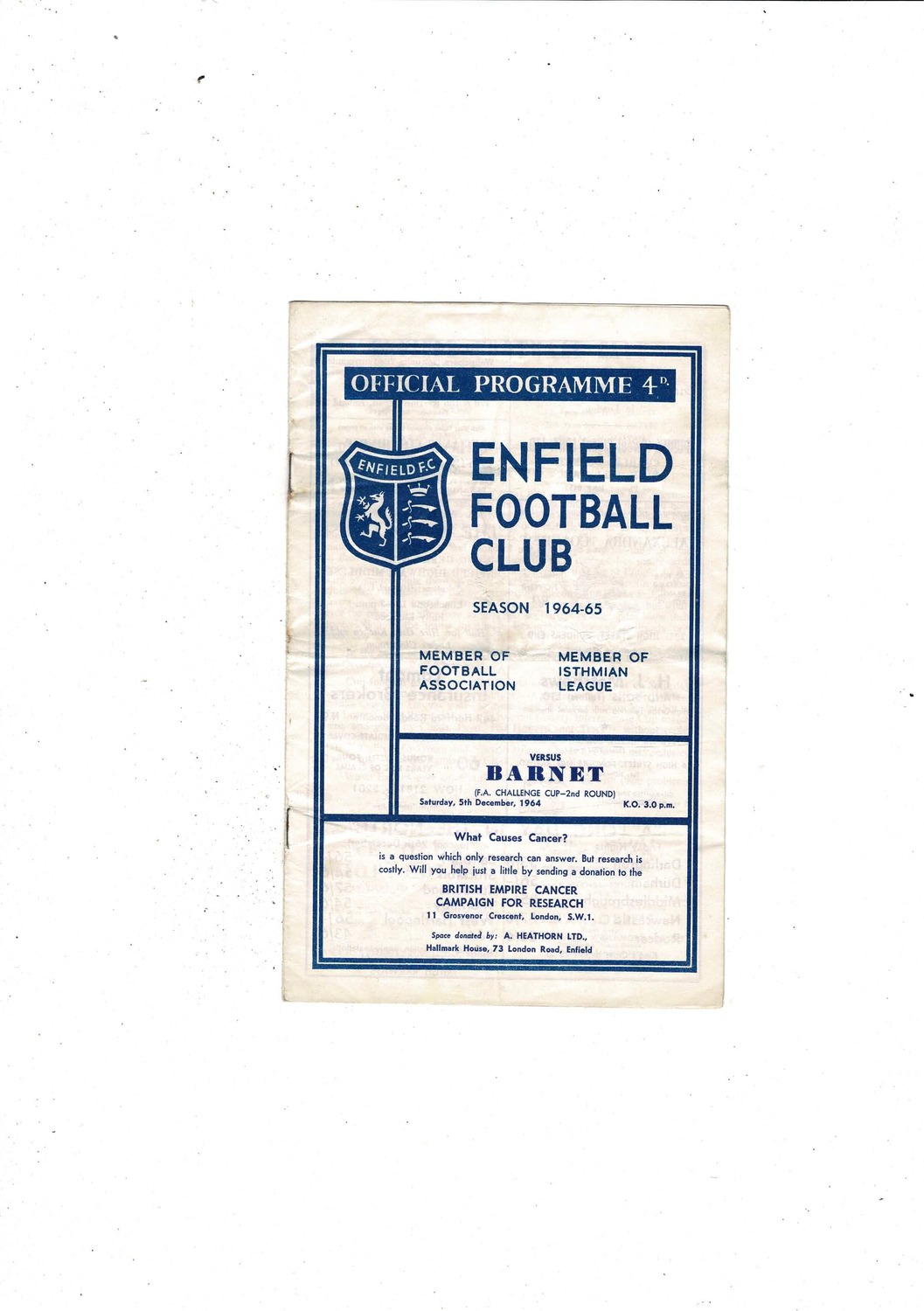 Enfield v Barnet FA Cup Football Programme 1964/65
