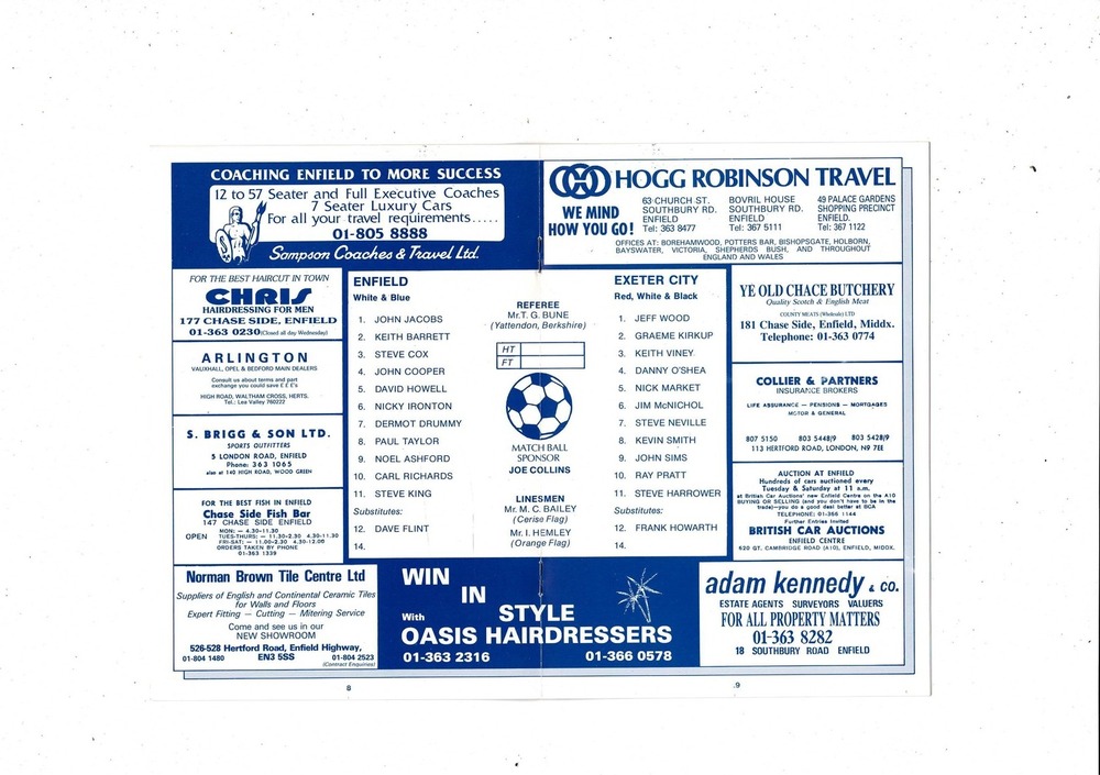 Enfield v Exeter City FA Cup Football Programme 1984/85