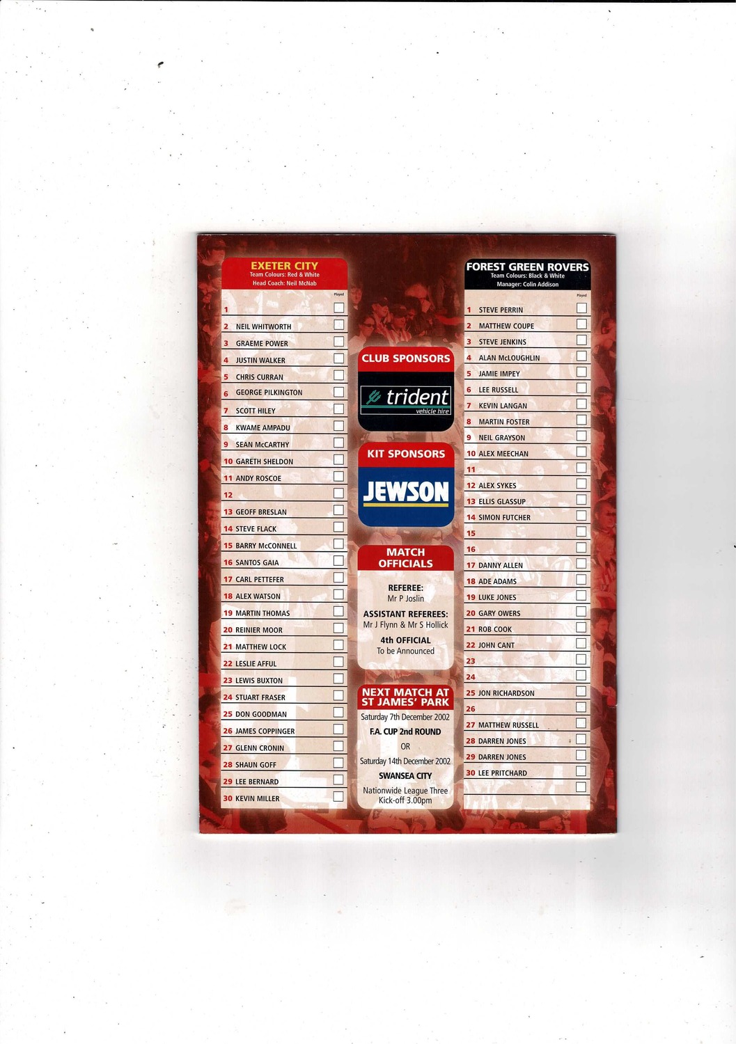Exeter City v Forest Green Rovers FA Cup Football Programme 2002/03