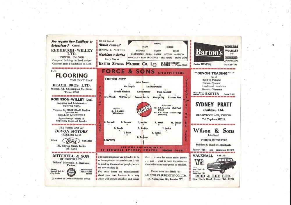 Exeter City v Hayes FA Cup Football Programme 1964/65