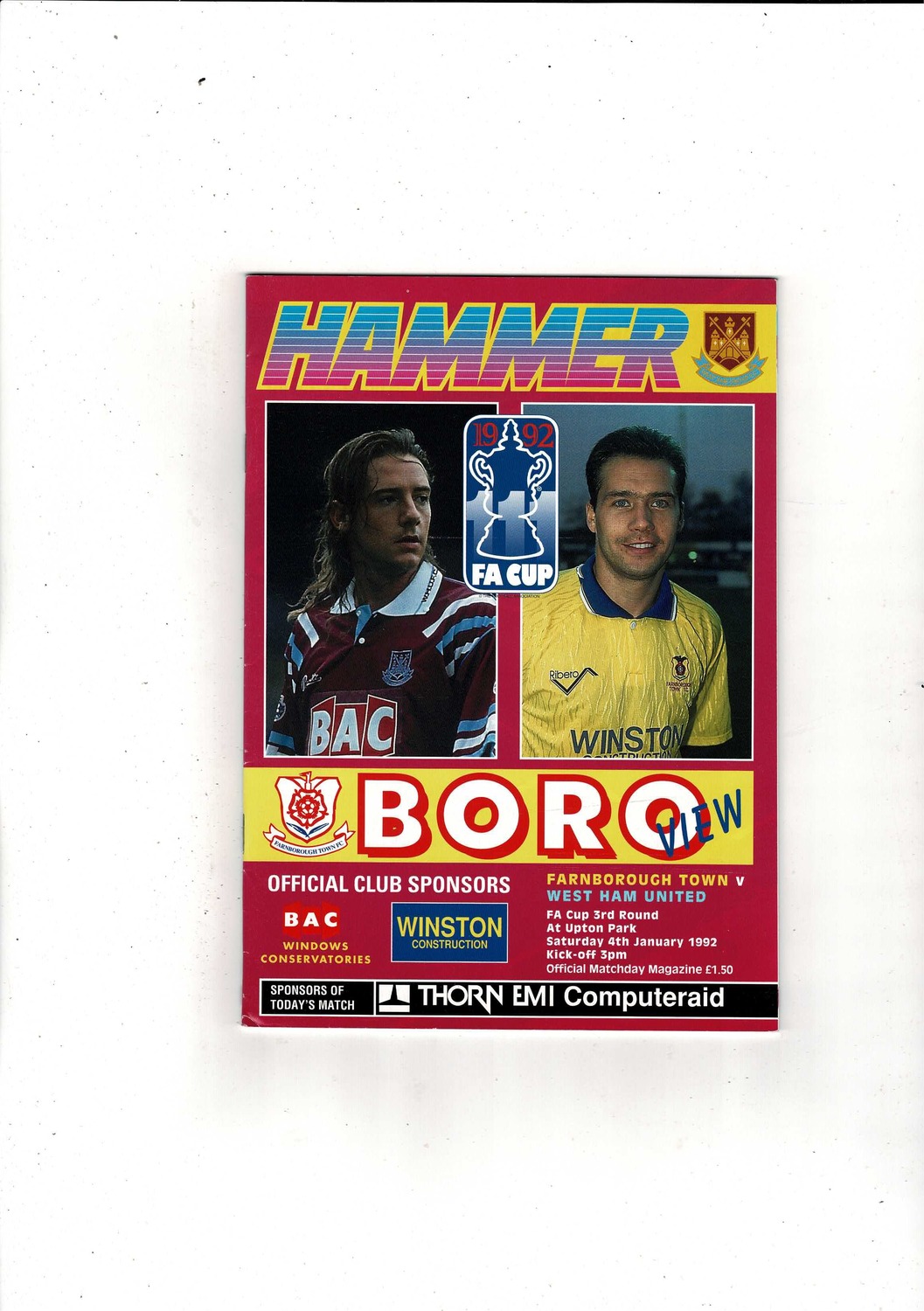 Farnborough Town v West Ham United FA Cup Football Programme 1992/93 @ West Ham