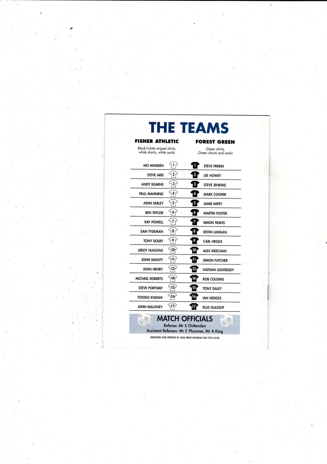 Fisher Athletic v Forest Green Rovers FA Cup Football Programme 2001/02