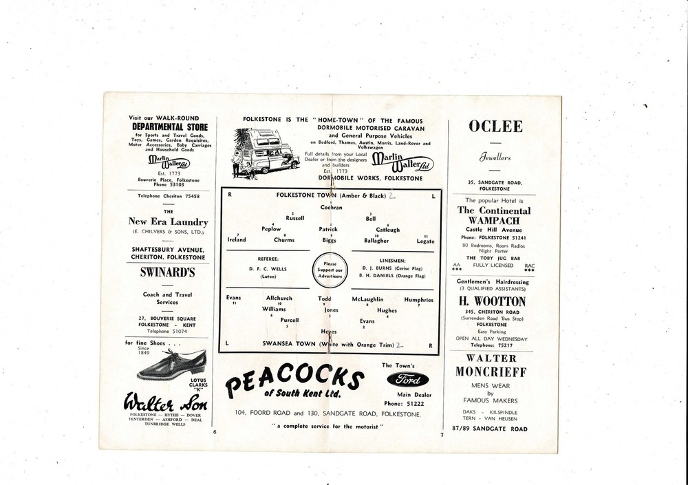 Folkestone Town v Swansea FA Cup Football Programme 1966/67