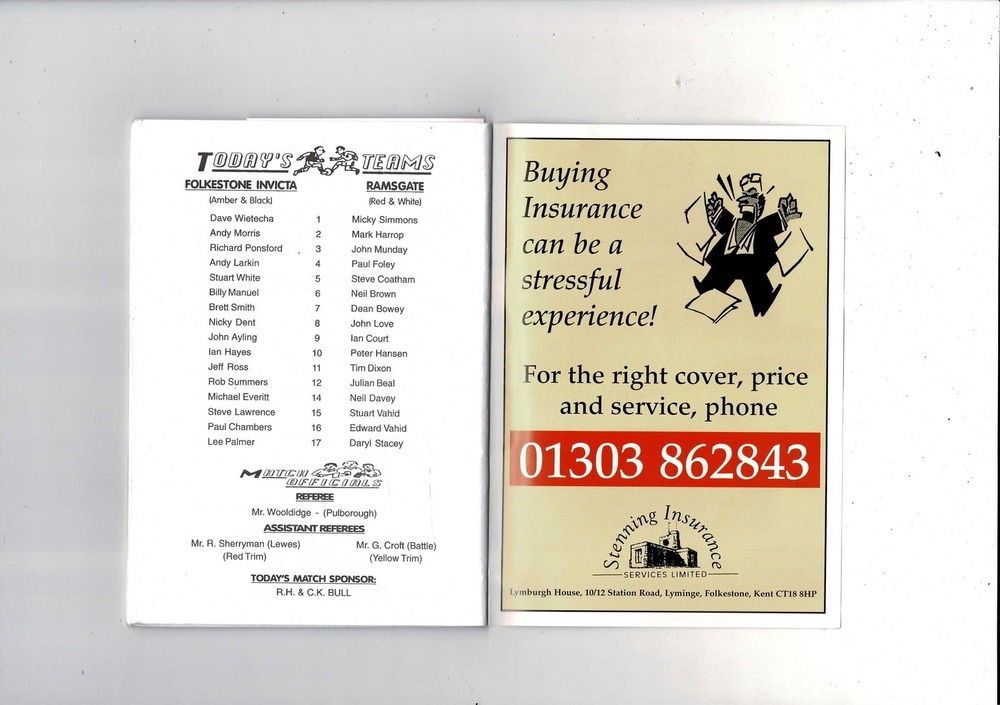 Folkstone Invicta v Ramsgate FA Cup Football Programme 1999/00