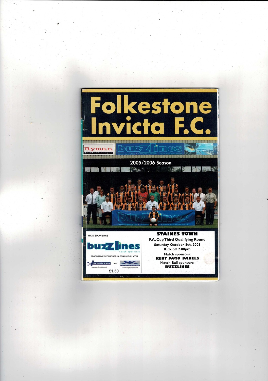 Folkstone Invicta v Staines Town FA Cup Football Programme 2005/06