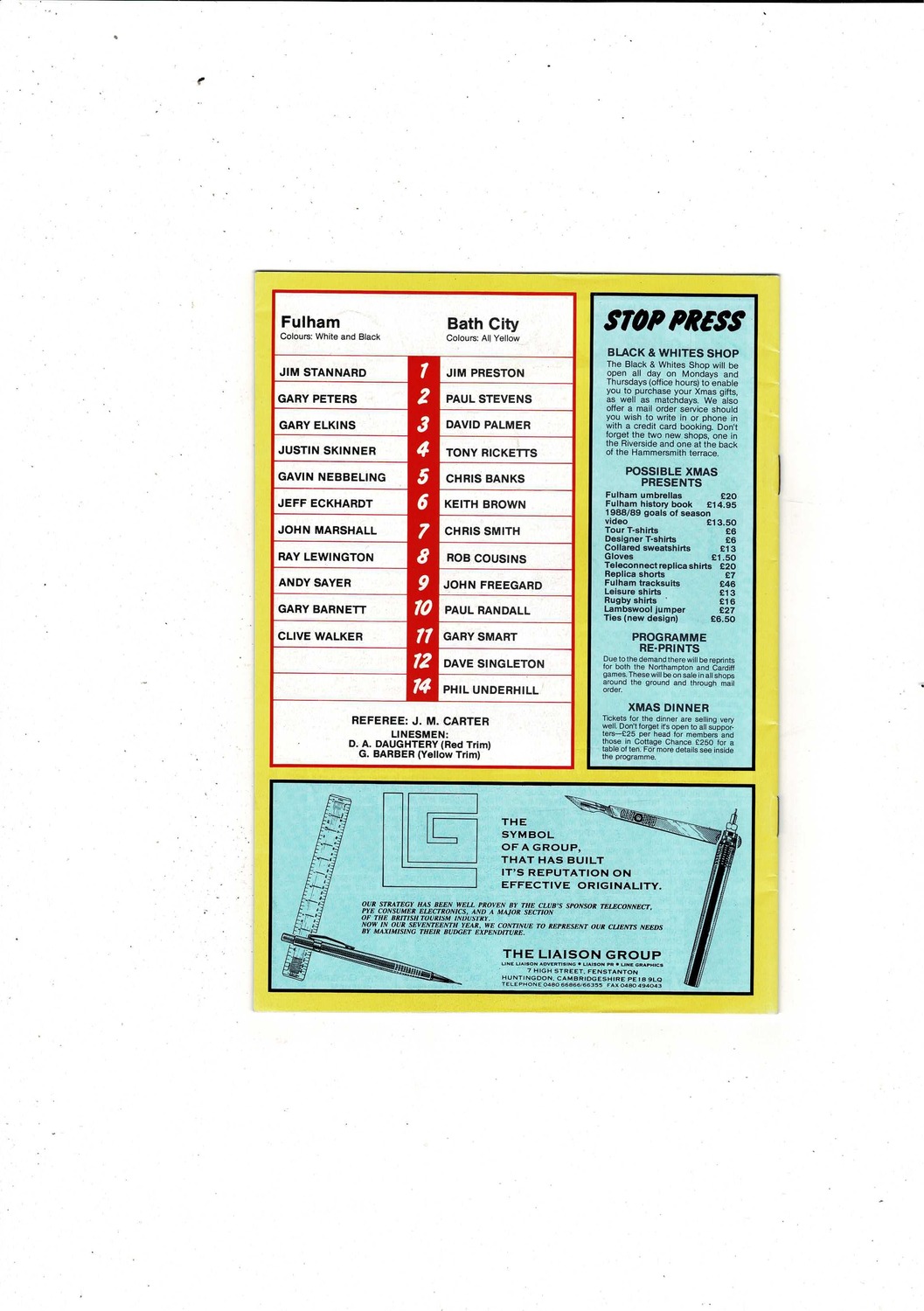 Fulham v Bath City FA Cup Football Programme 1989/90