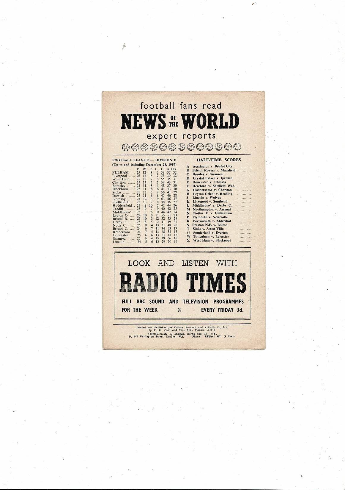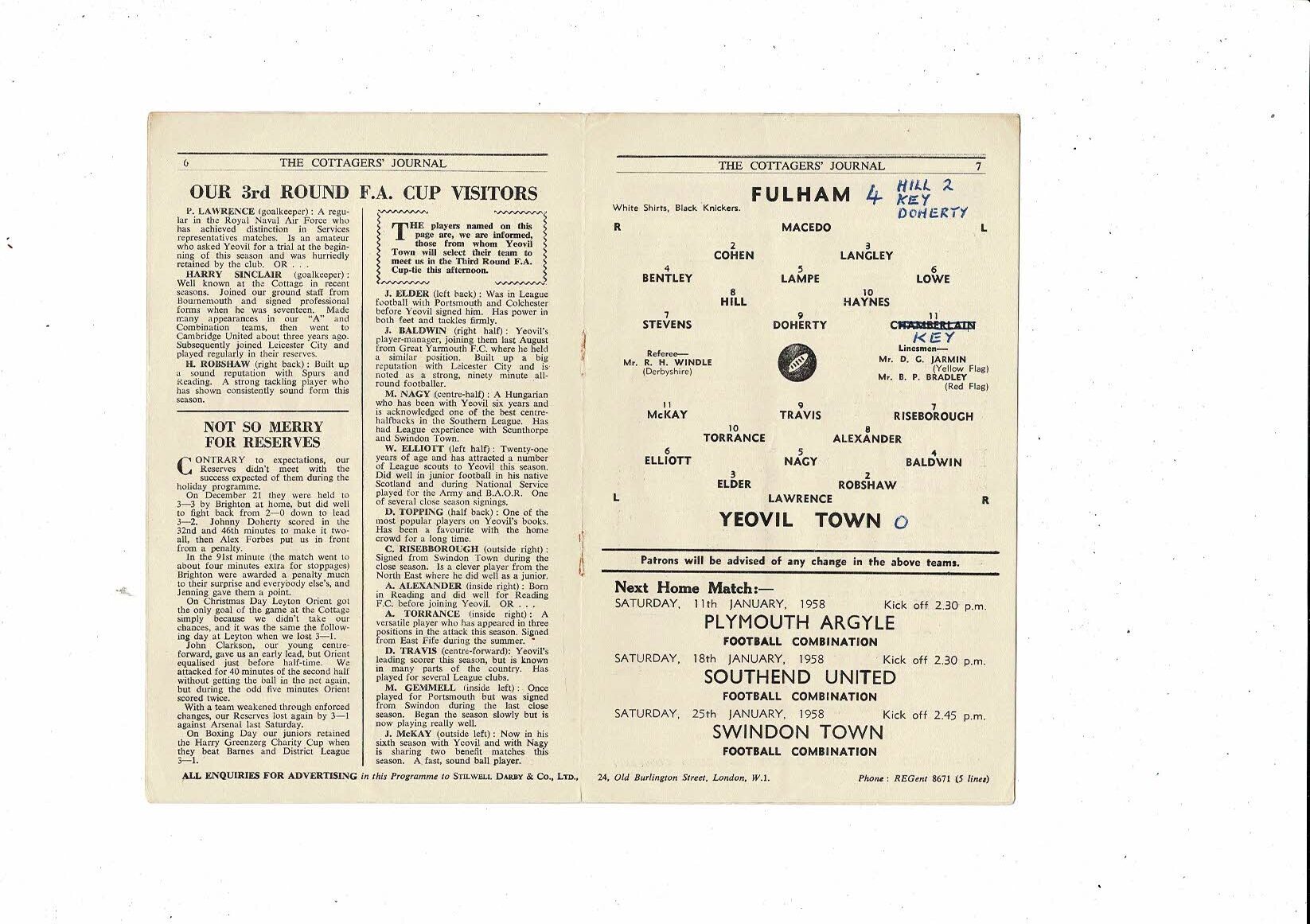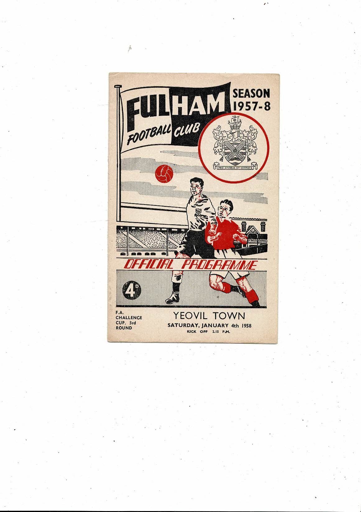 Fulham v Yeovil Town FA Cup Football Programme 1957/58