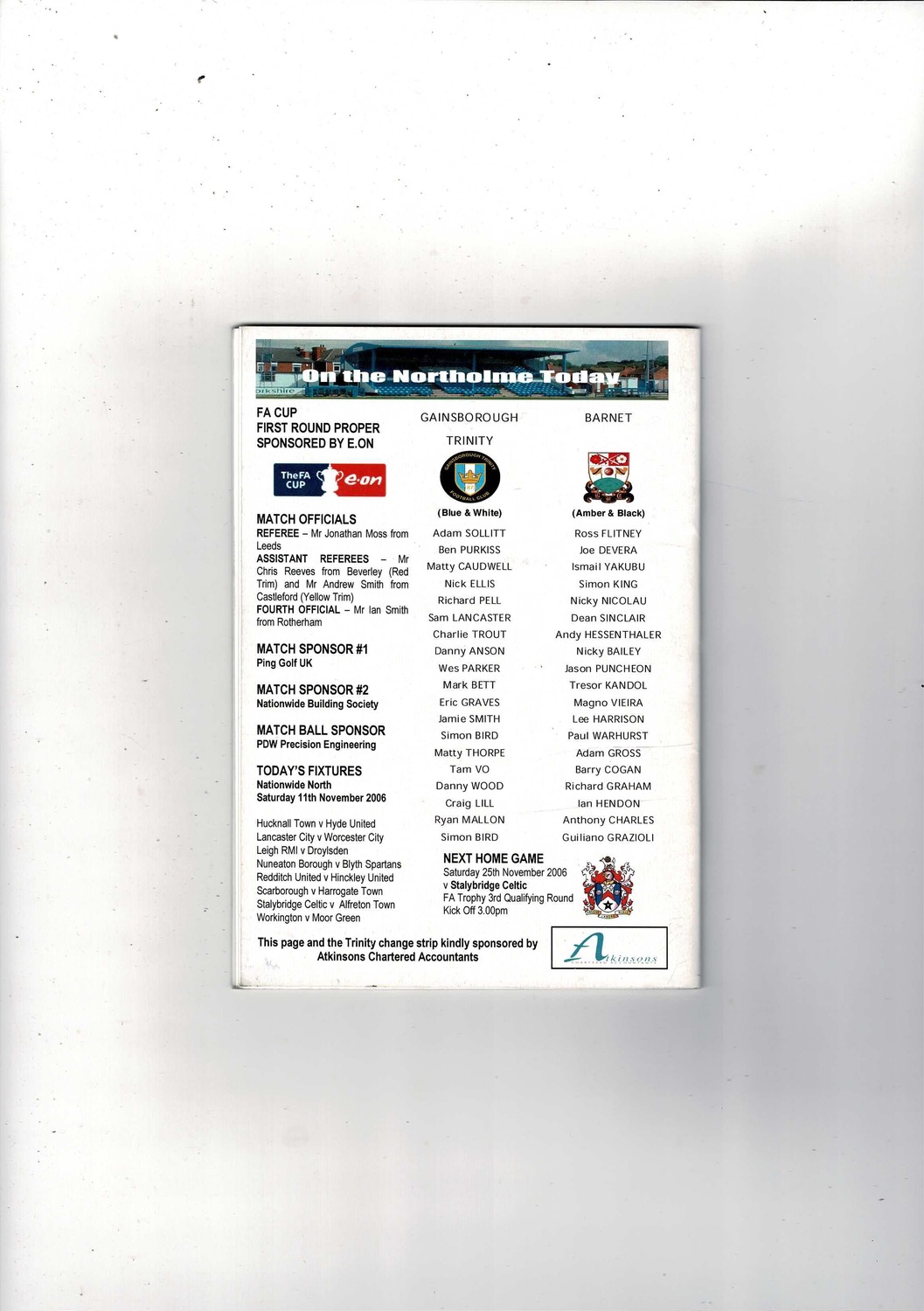Gainsborough Trinity v Barnet FA Cup Football Programme + Press cuttings 2006/07