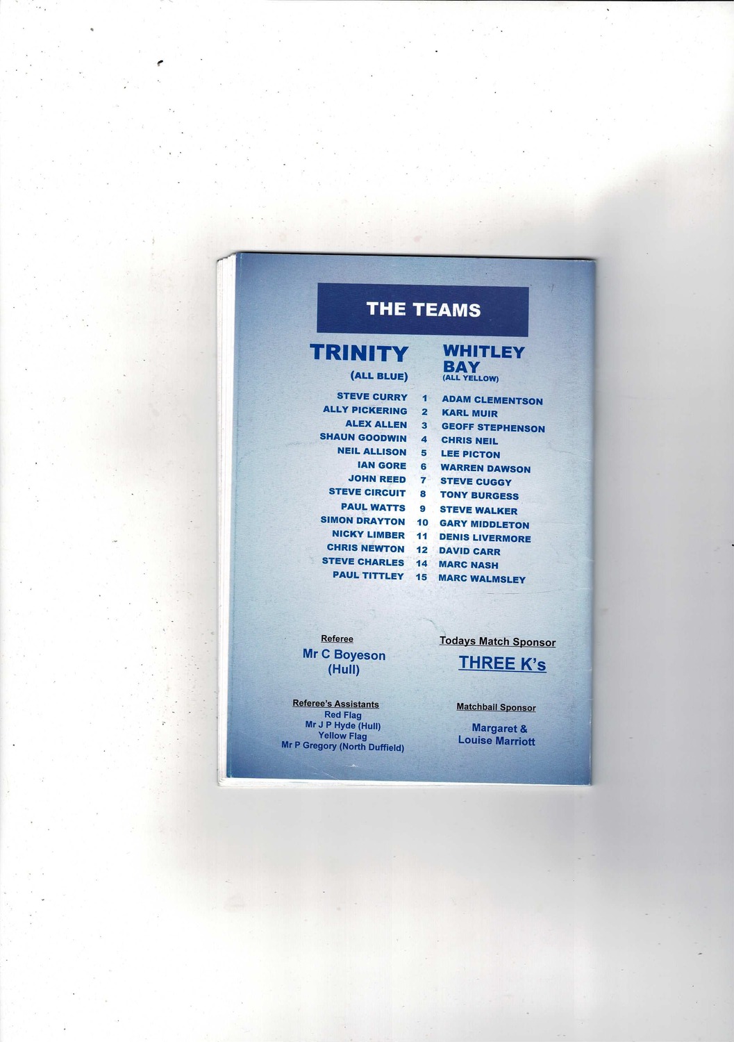 Gainsborough Trinity v Whitley Bay FA Cup Football Programme 2000/01