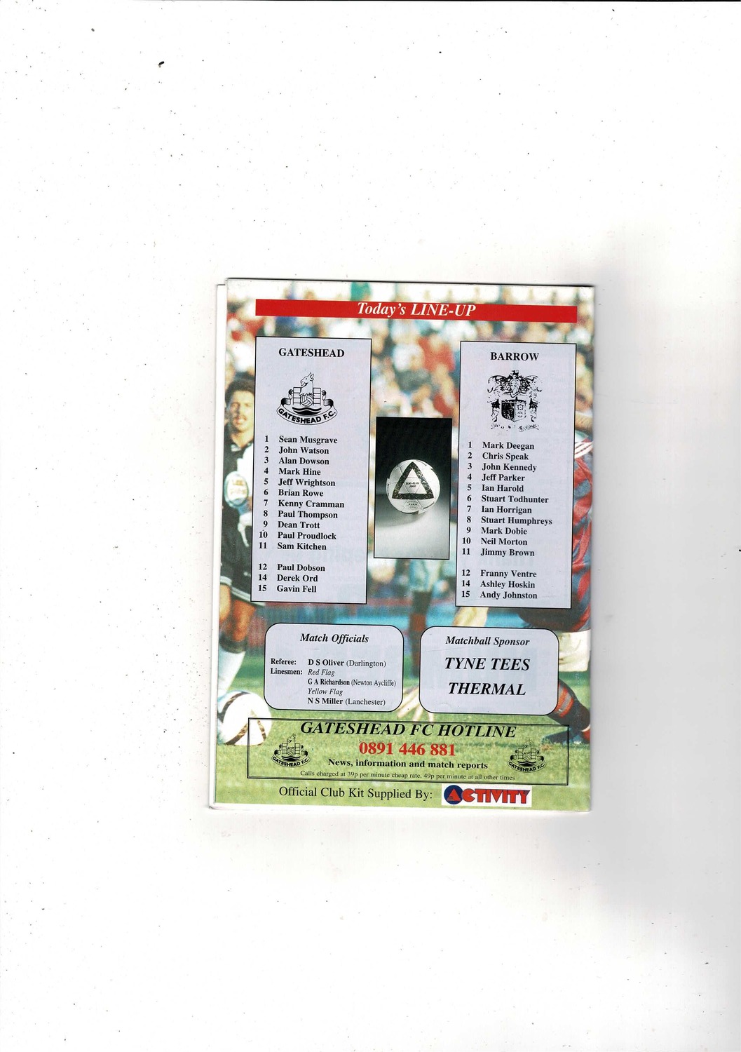 Gateshead v Barrow FA Cup Football Programme 1995/96