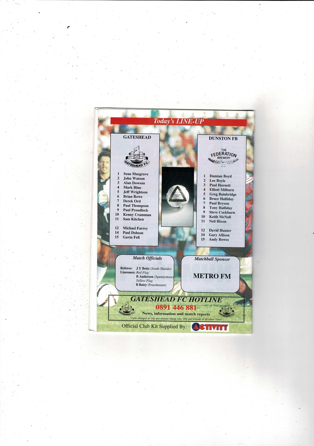 Gateshead v Dunston FB FA Cup Football Programme 1995/96