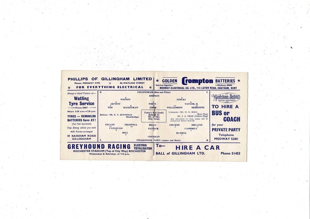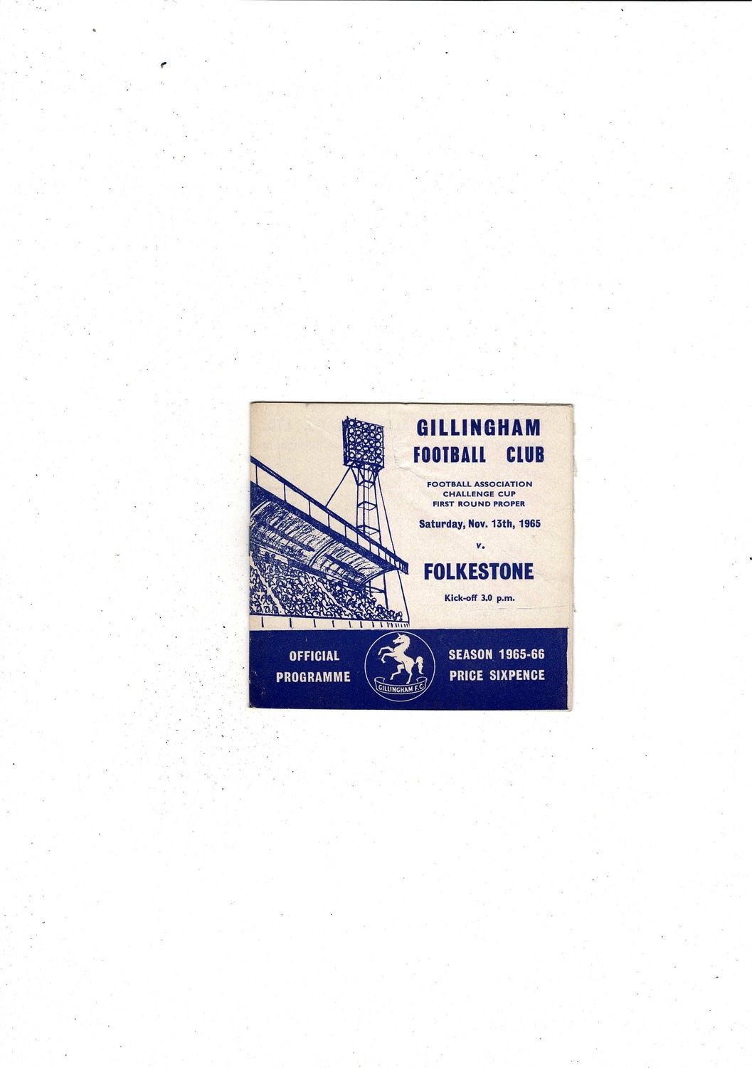 Gillingham v Folkstone FA Cup Football Programme 1965/66