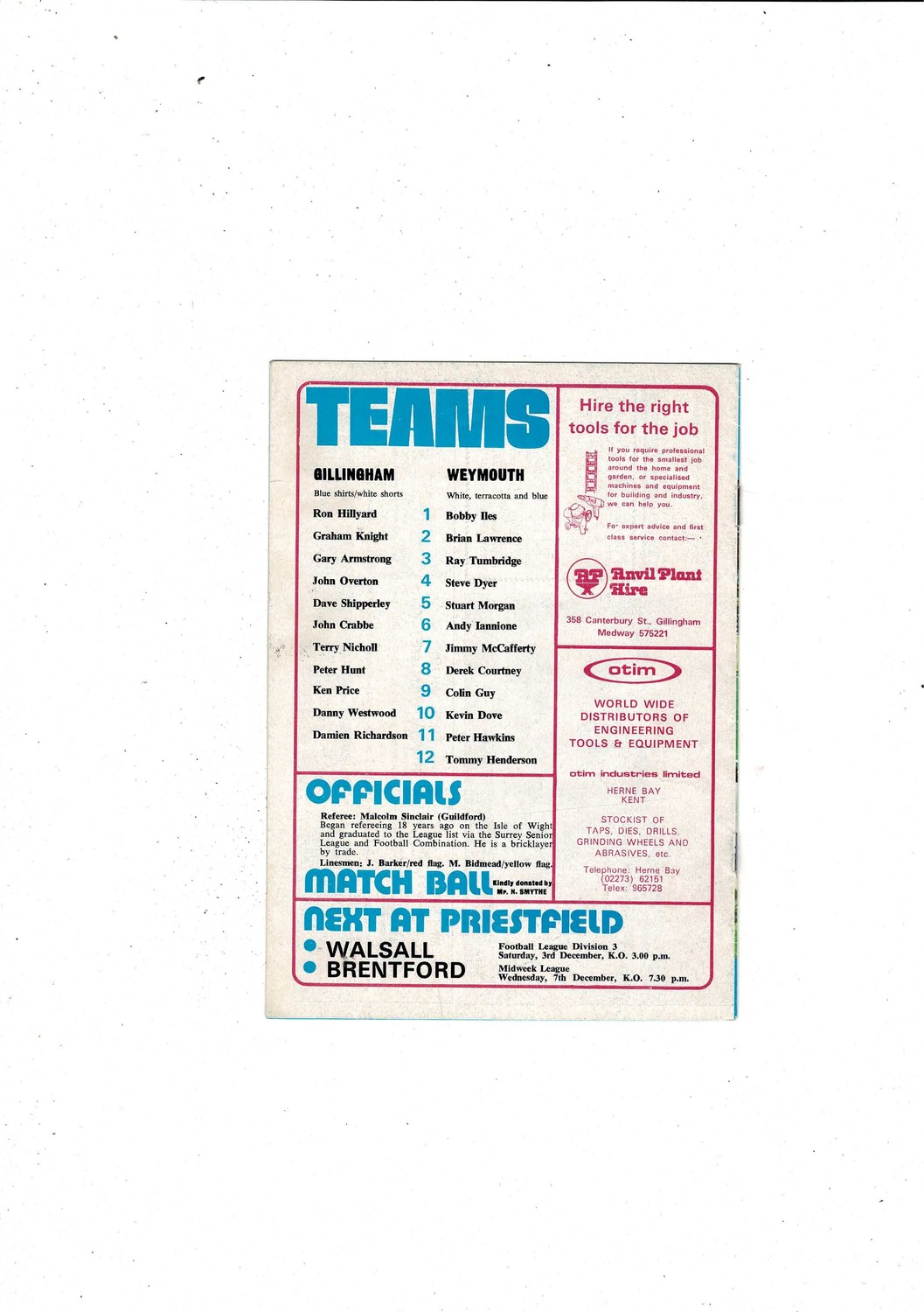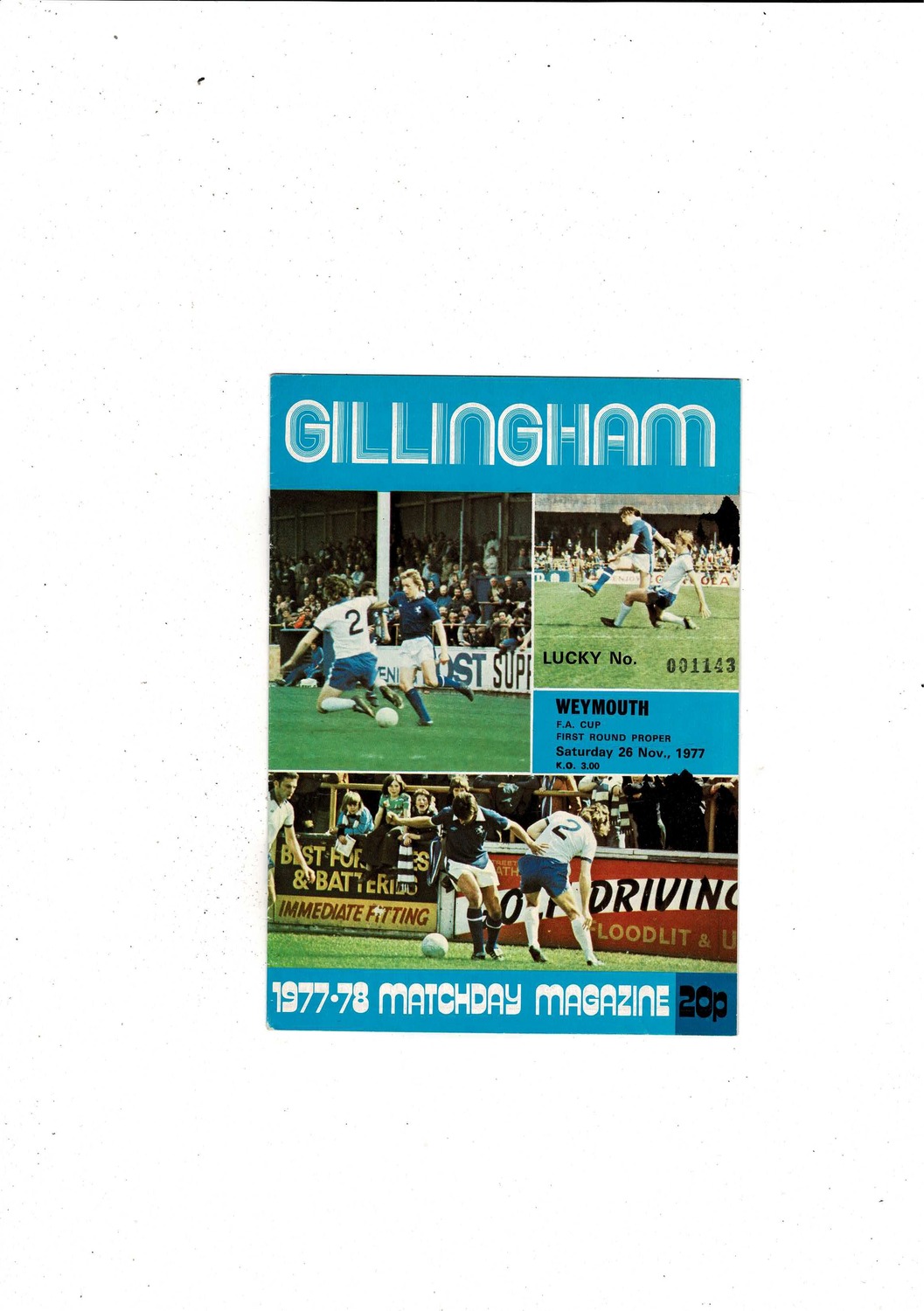 Gillingham v Weymouth FA Cup Football Programme 1977/78