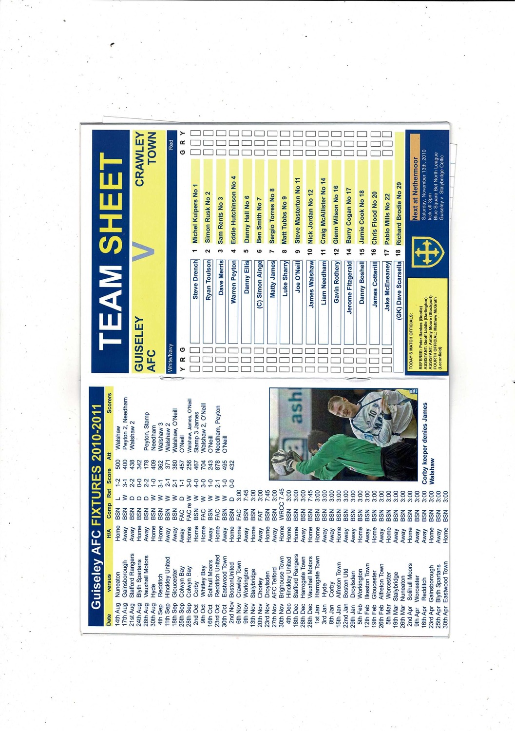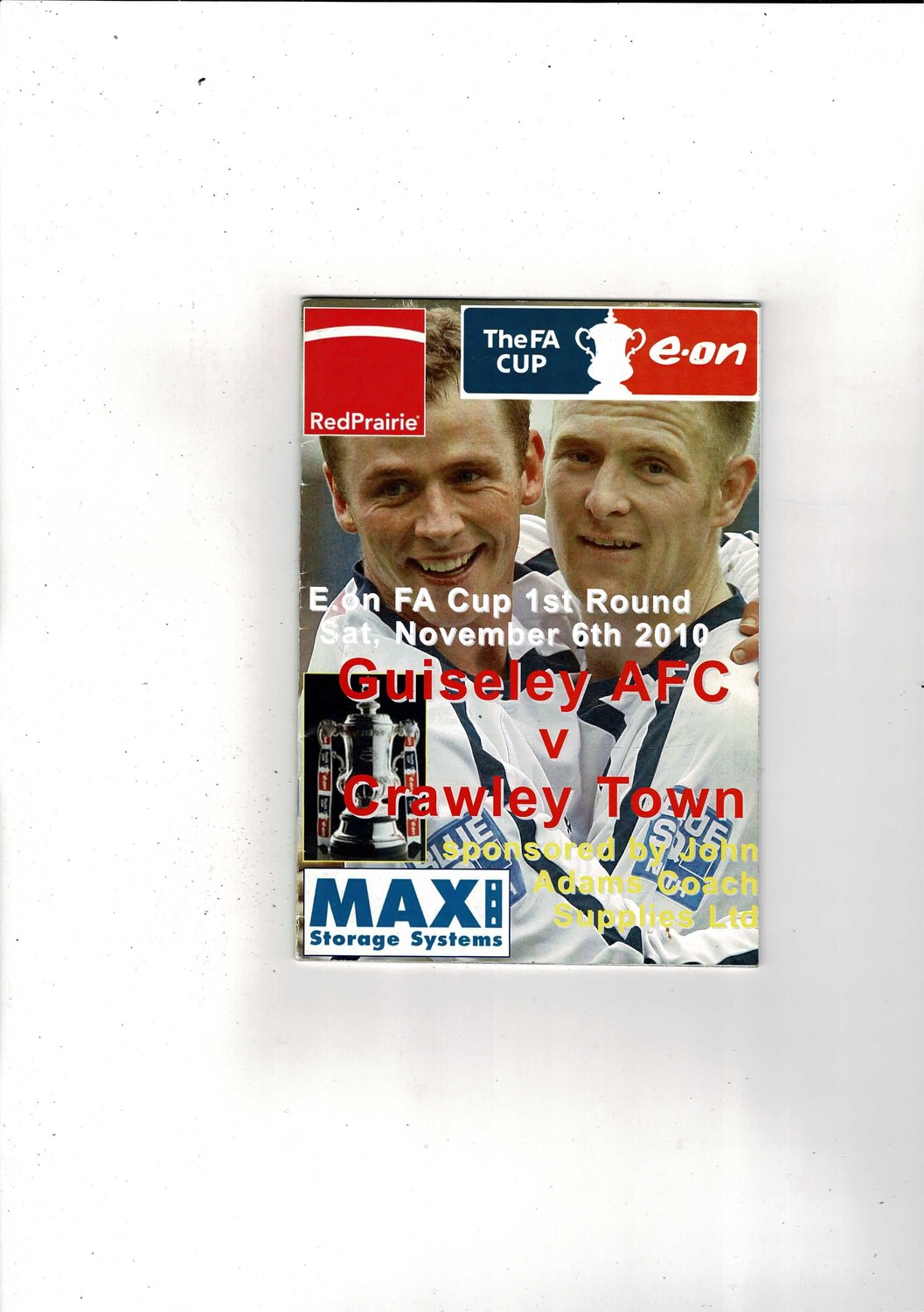 Guiseley v Crawley Town FA Cup Football Programme + Press cutting 2010/11
