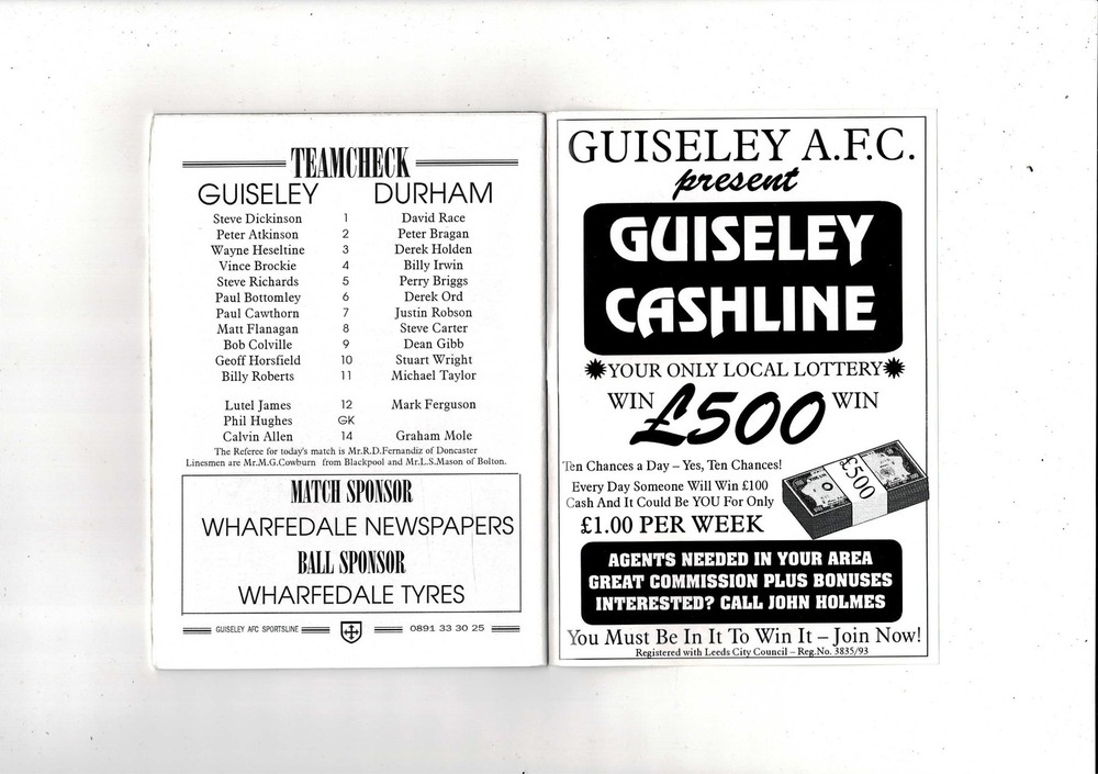 Guiseley v Durham City FA Cup Football Programme 1994/95