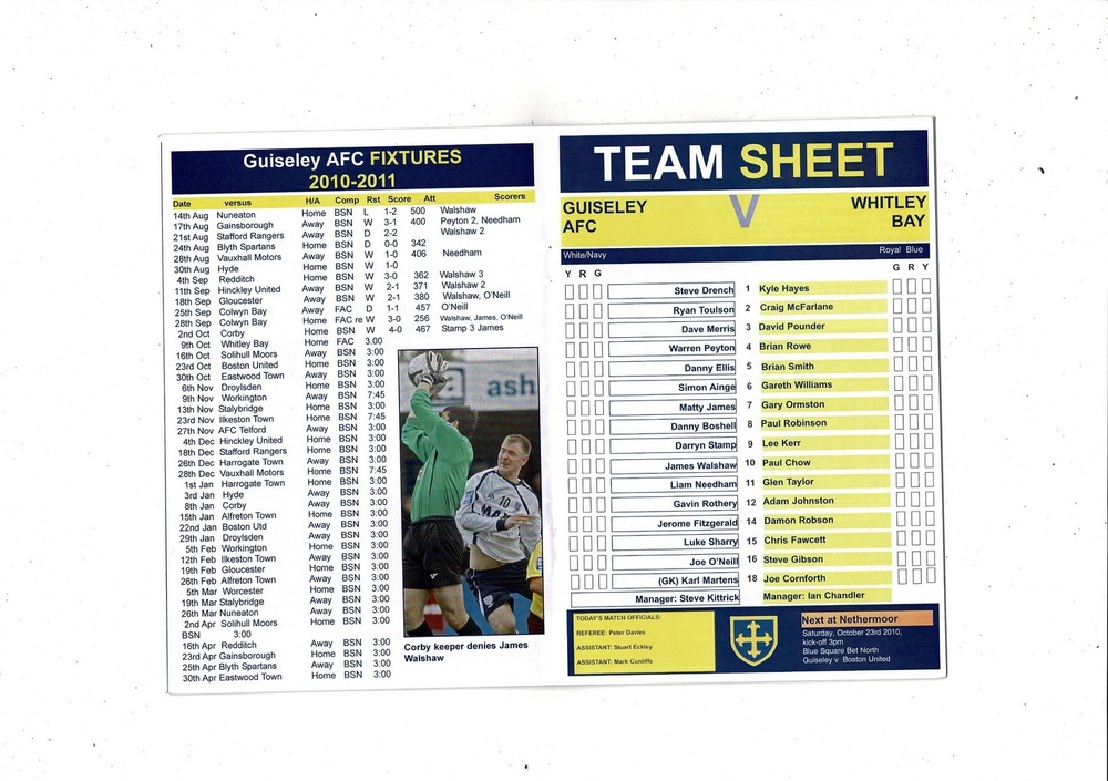 Guiseley v Whitley Bay FA Cup Football Programme 2010/11