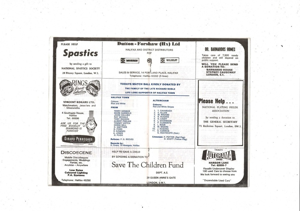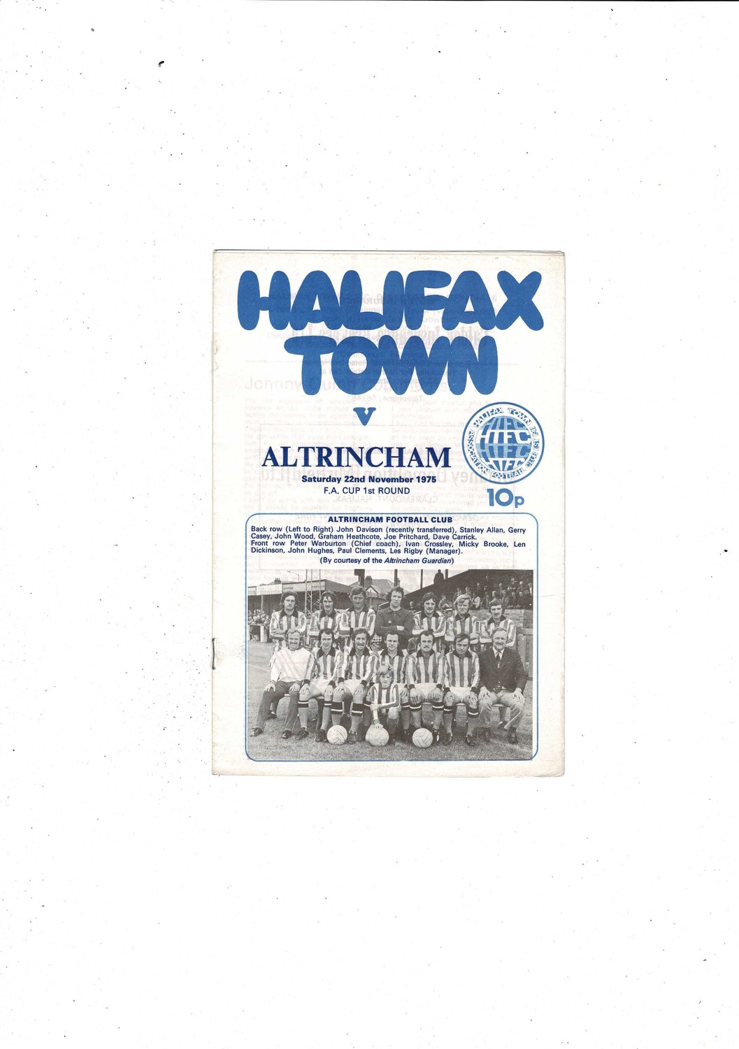 Halifax Town v Altrincham FA Cup Football Programme 1975/76