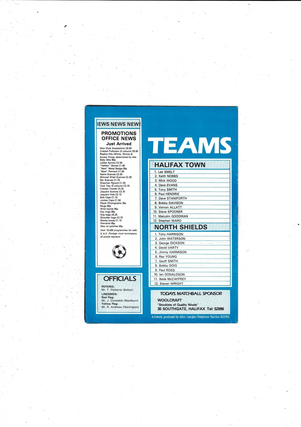 Halifax Town v North Shields FA Cup Football Programme 1982/83