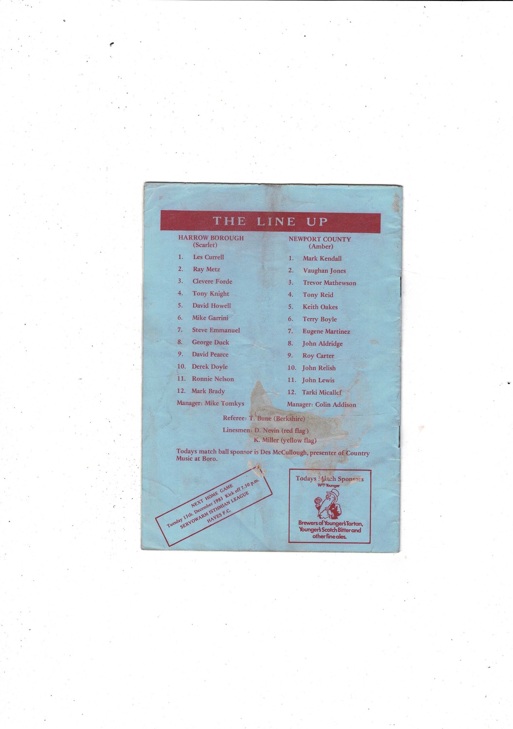 Harrow Borough v Newport County FA Cup Football Programme 1983/84