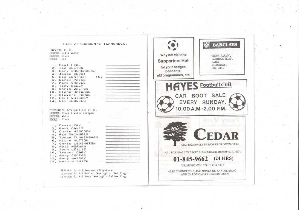 Hayes v Fisher Athletic FA Cup Football Programme 1987/88