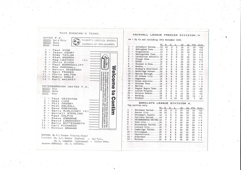 Hayes v Peterborough United FA Cup Replay Football Programme 1989/90