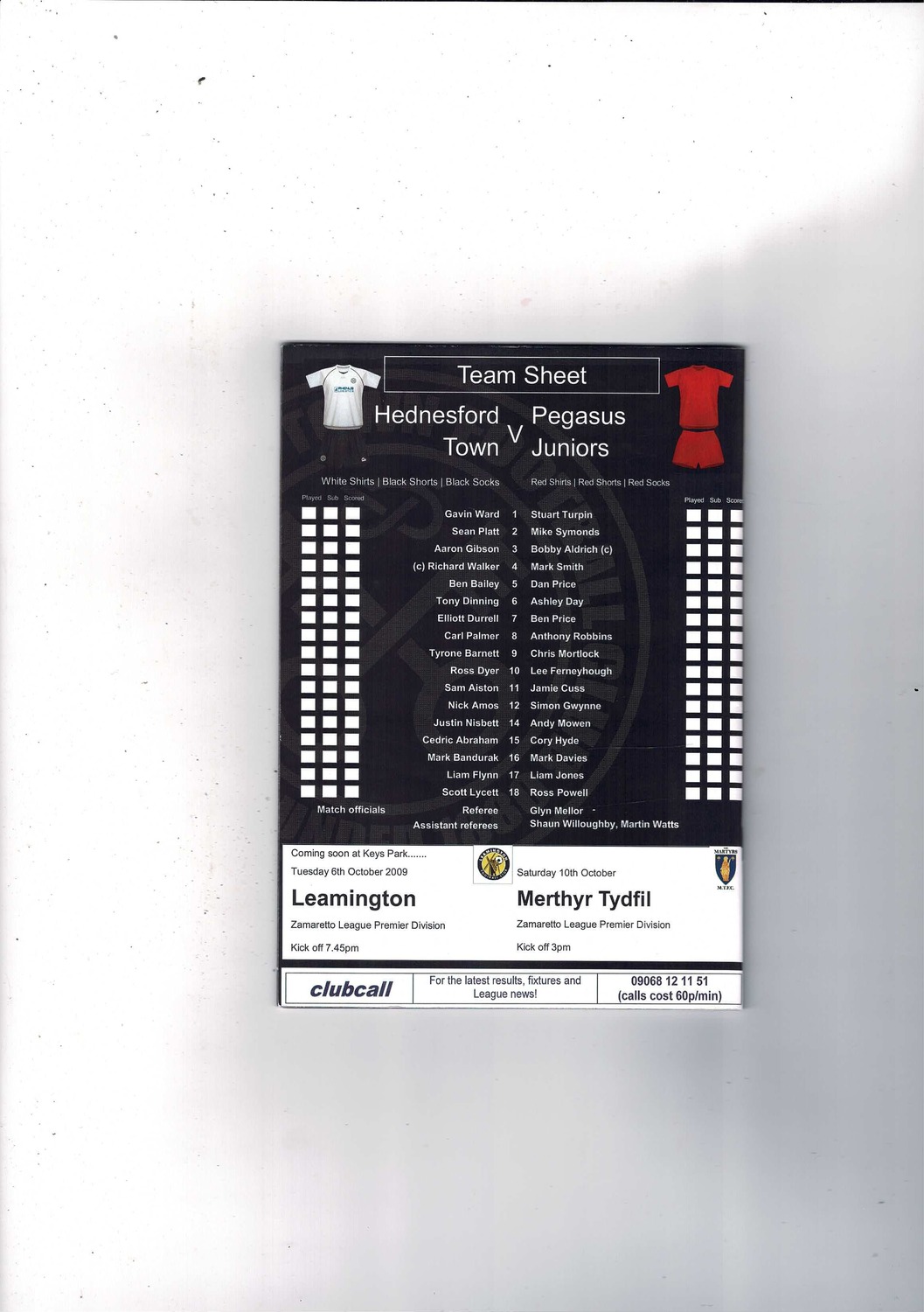 Hednesford Town v Pegasus Juniors FA Cup Football Programme 2009/10
