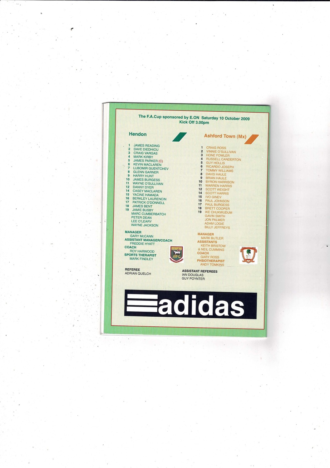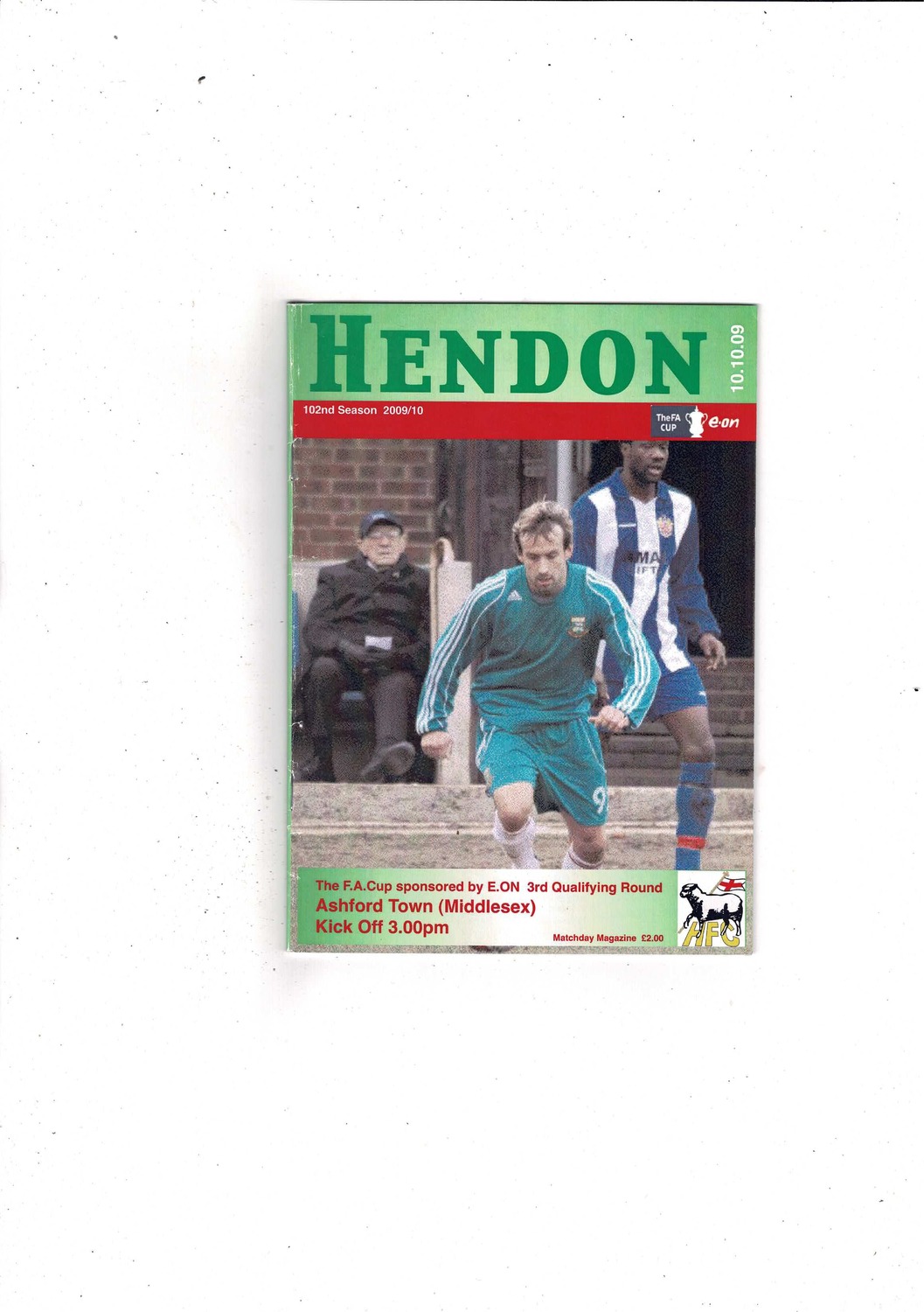 Hendon v Ashford Town (Middlesex) FA Cup Football Programme 2009/10
