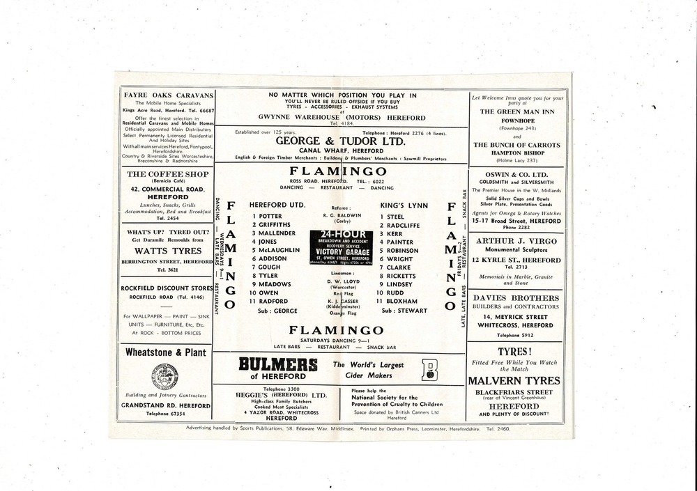 Hereford United v Kings Lynn FA Cup Football Programme 1971/72