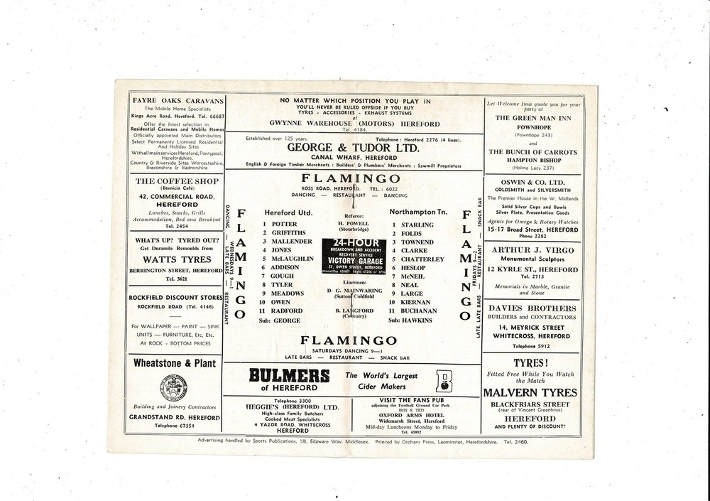 Hereford United v Northampton Town FA Cup Football Programme 1971/72