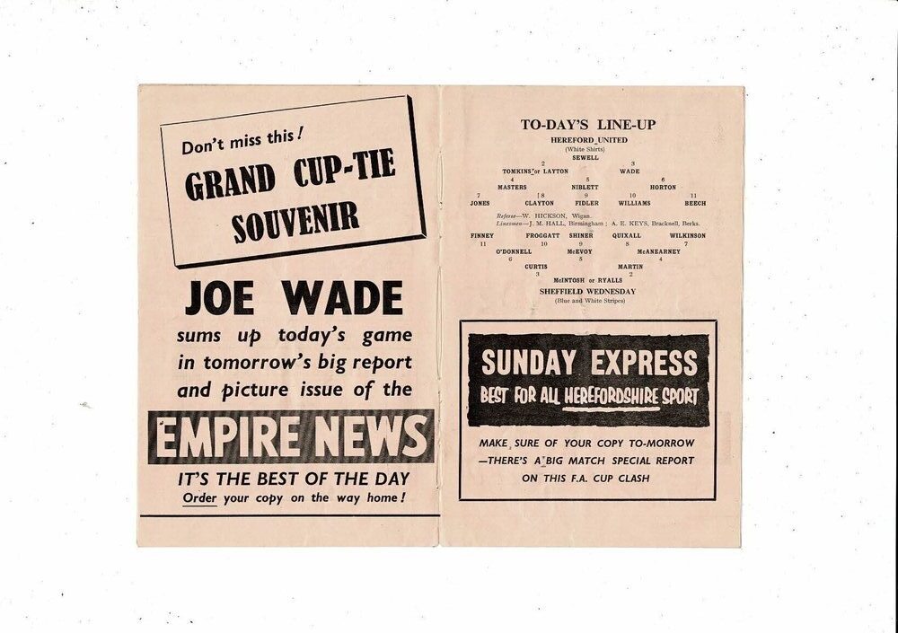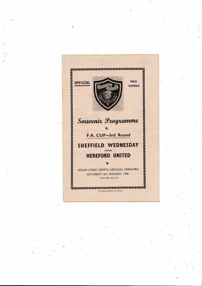 Hereford United v Sheffield Wednesday FA Cup Football Programme 1957/58