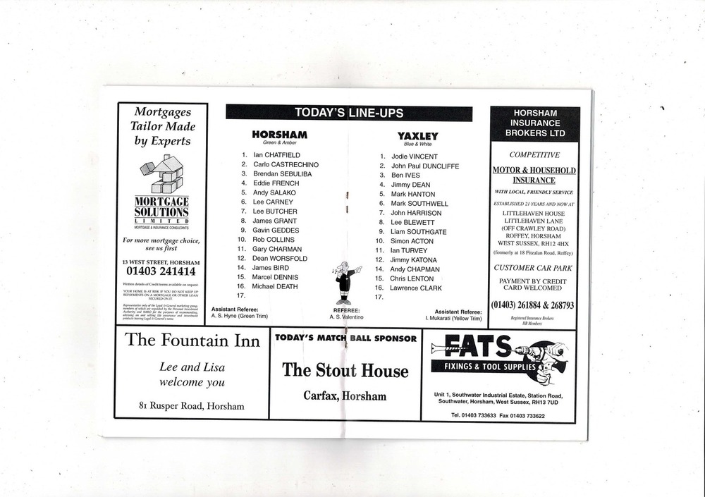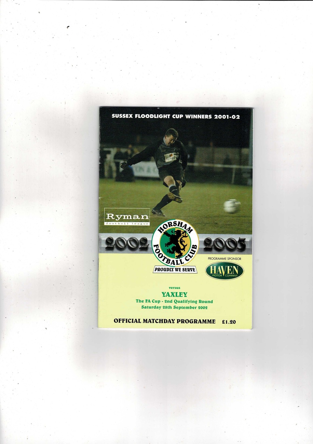 Horsham v Yaxley FA Cup Football Programme 2002/03