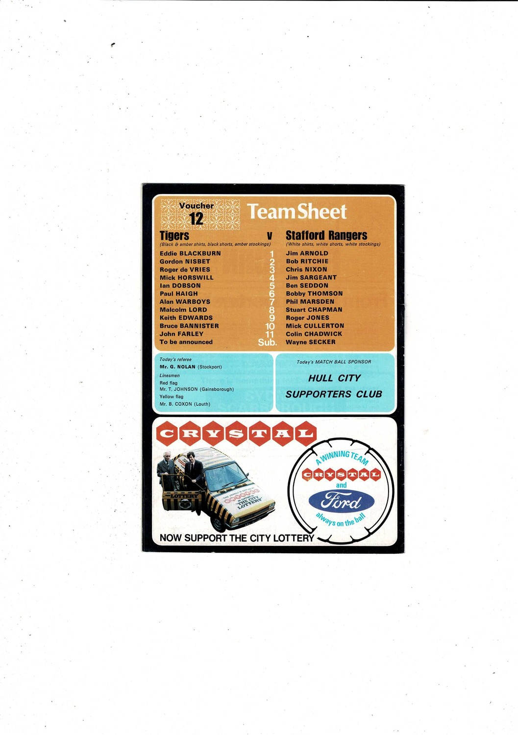 Hull City v Stafford Rangers FA Cup Football Programme 1978/79