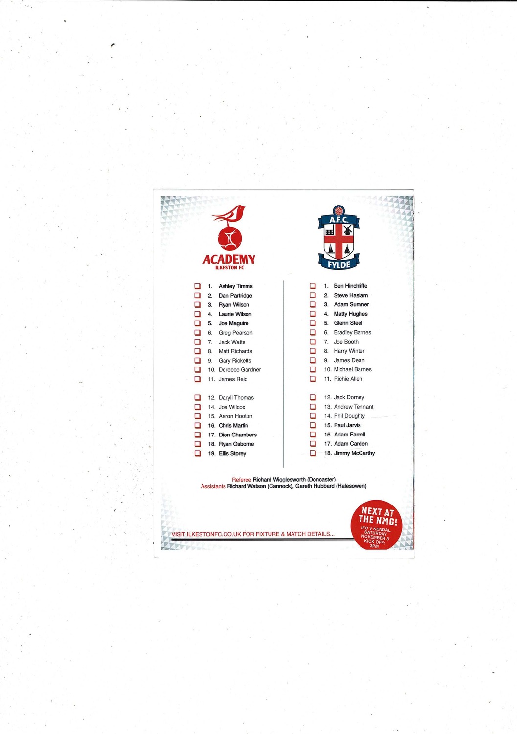 Ilkeston v AFC Fylde FA Cup Replay Football Programme 2012/13