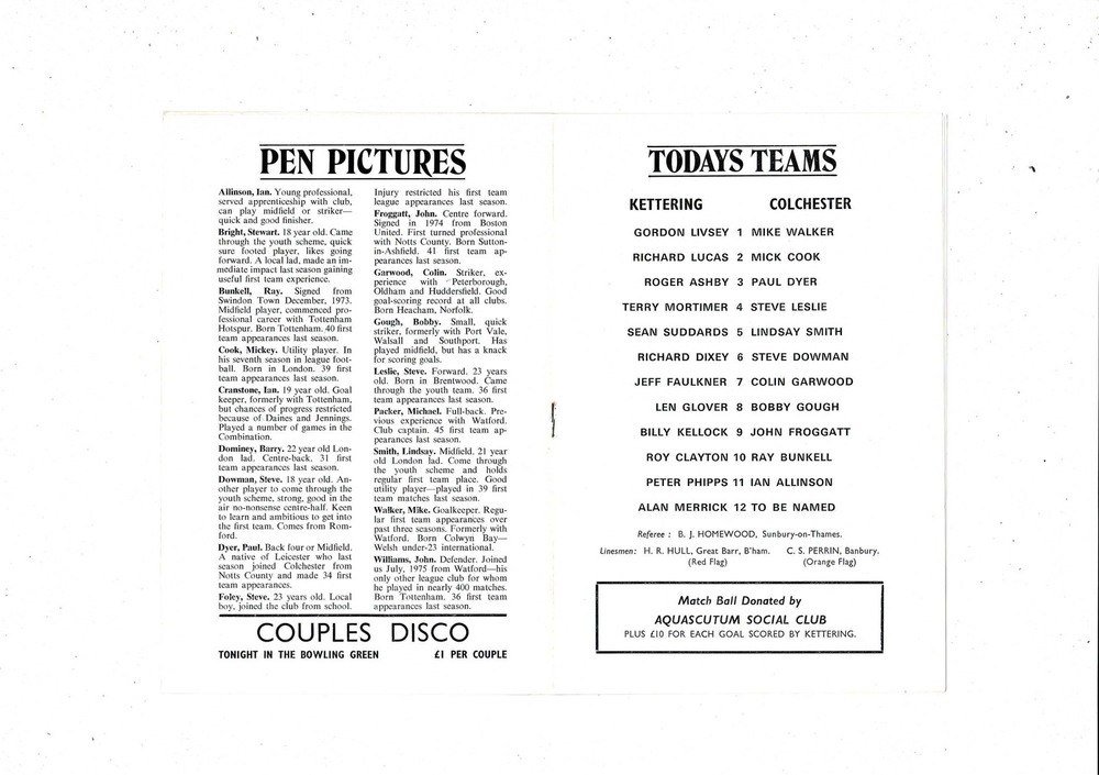 Kettering Town v Colchester United FA Cup Football Programme 1976/77