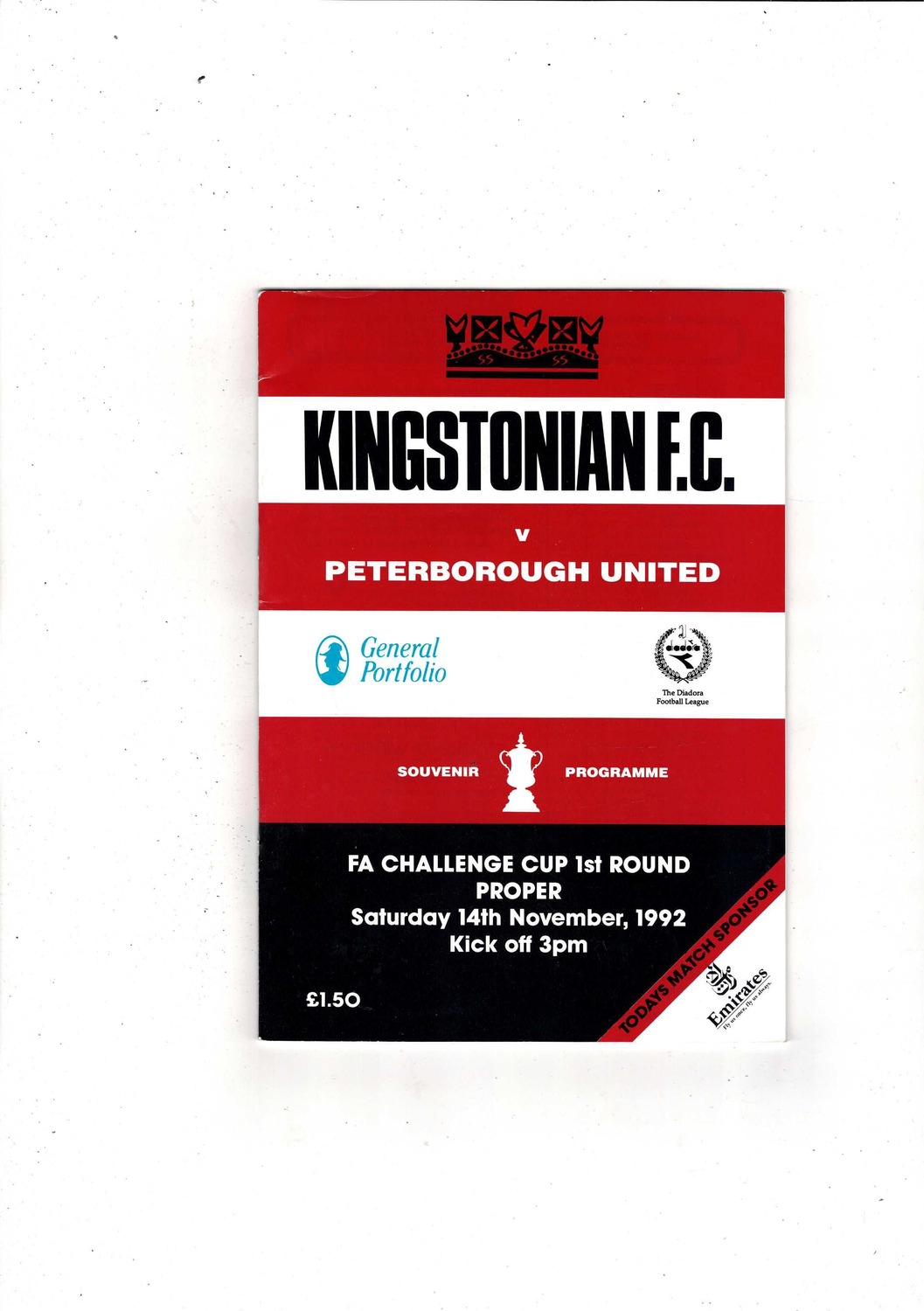 Kingstonian v Peterborough United FA Cup Football Programme 1992/93