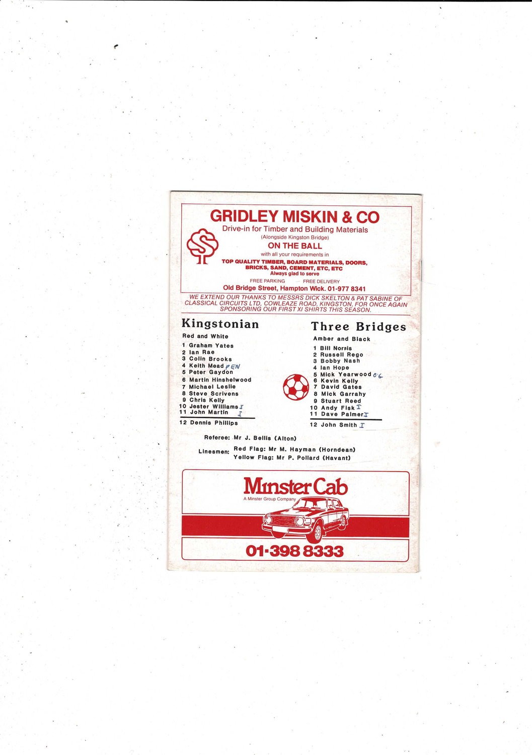 Kingstonian v Three Bridges FA Cup Football Programme 1982/83