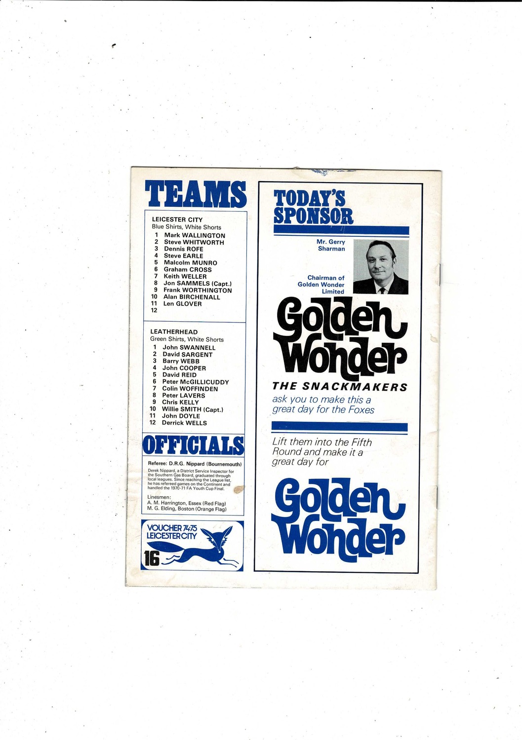 Leicester City v Leatherhead FA Cup Football Programme 1974/75