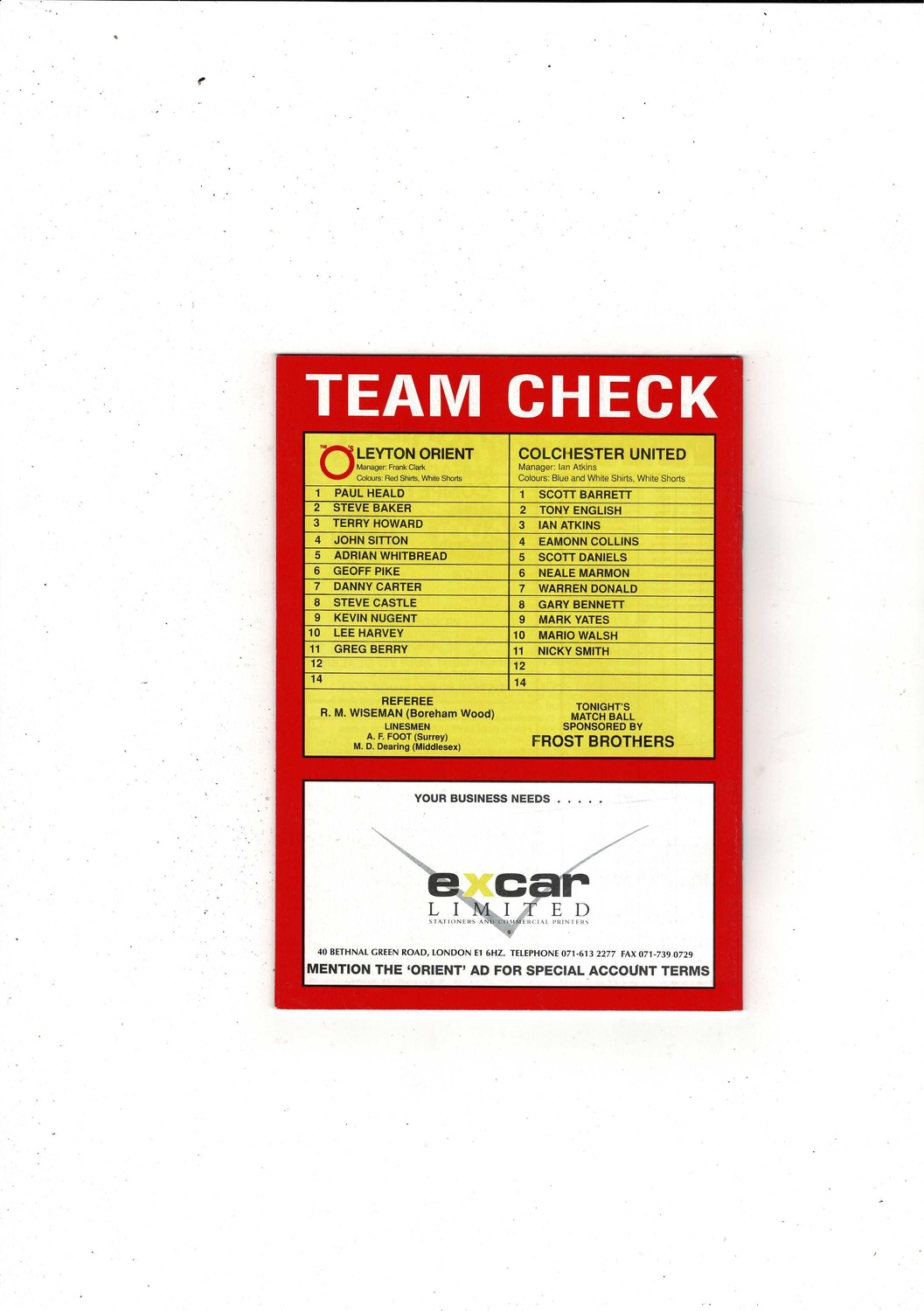 Leyton Orient v Colchester United FA Cup Football Programme 1990/91