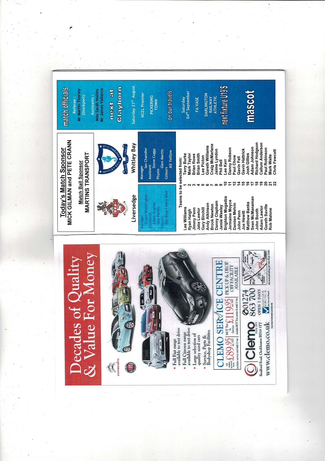 Liversedge v Whitley Bay FA Cup Football Programme 2010/11