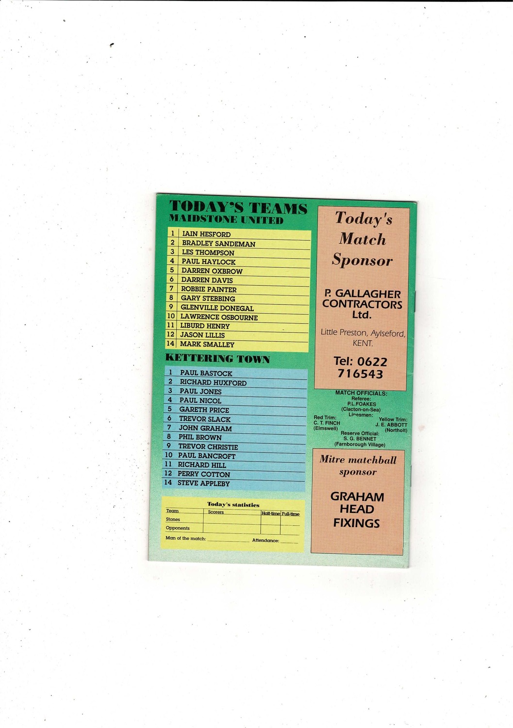 Maidstone United v Kettering Town FA Cup Football Programme 1991/92