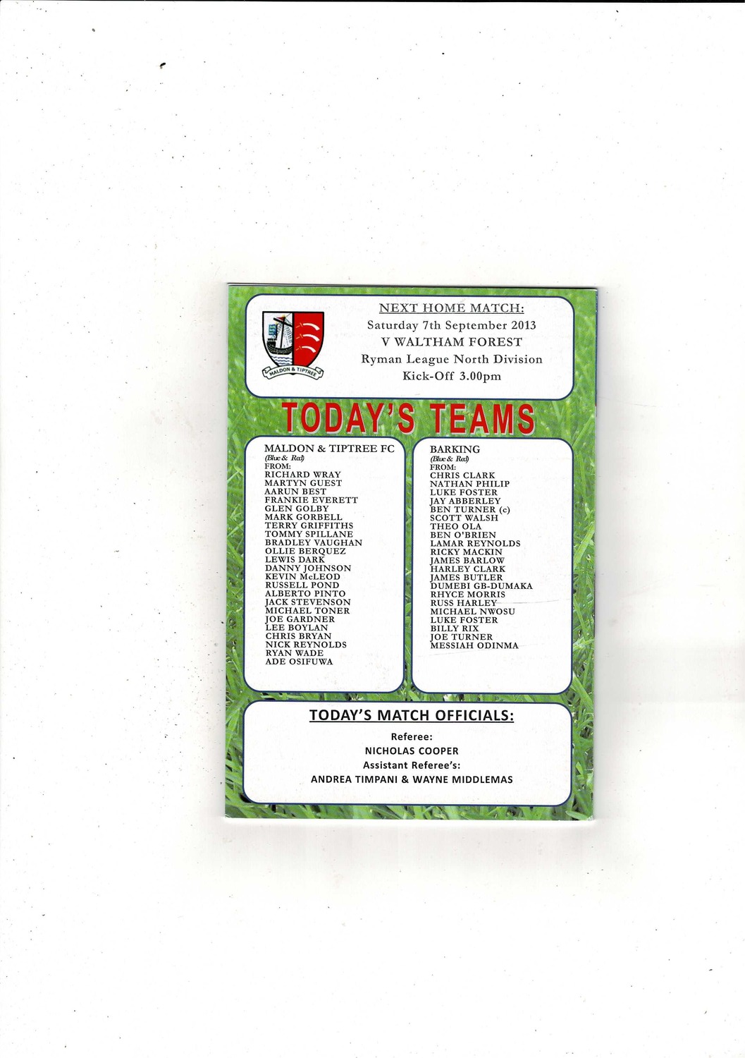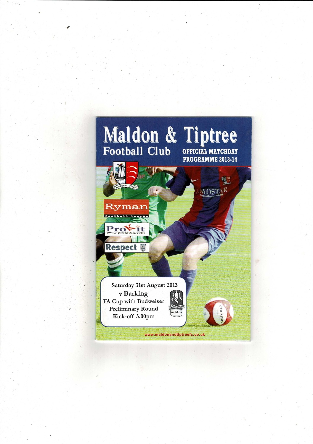 Maldon & Tiptree v Barking FA Cup Football Programme 2013/14