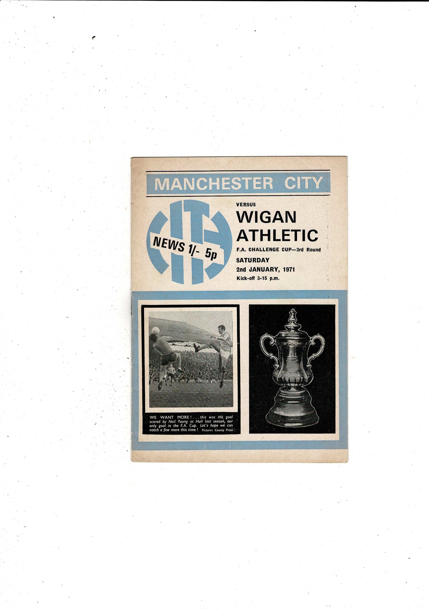 Manchester City v Wigan Athletic FA Cup Football Programme 1970/71