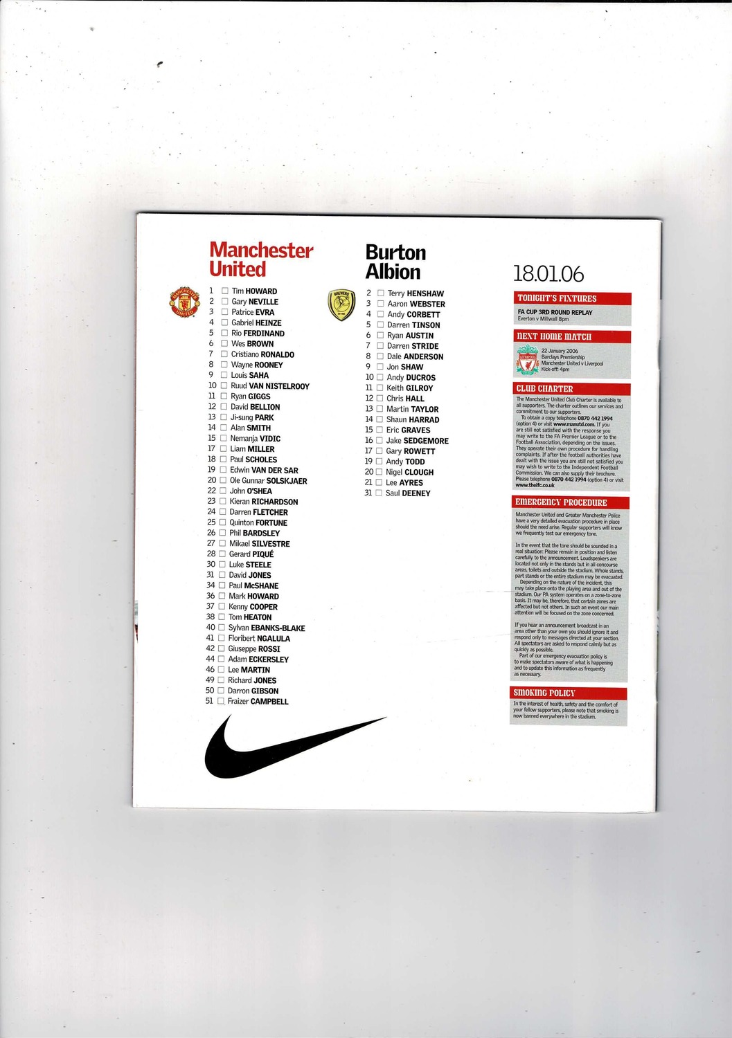 Manchester United v Burton Albion FA Cup Football Programme 2005/06
