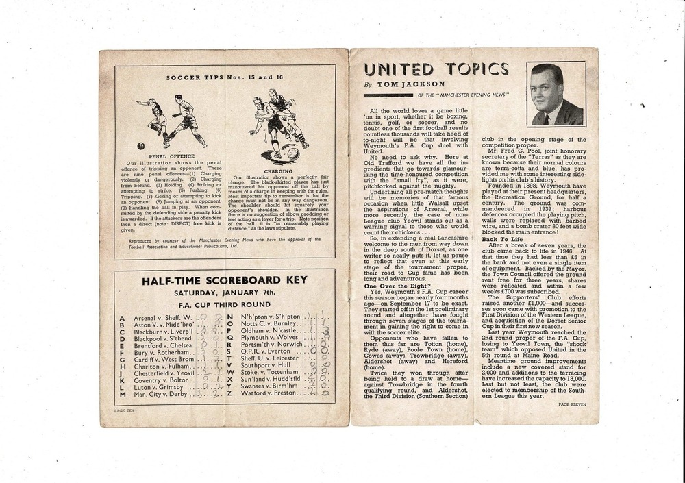 Manchester United v Weymouth FA Cup Football Programme 1949/50