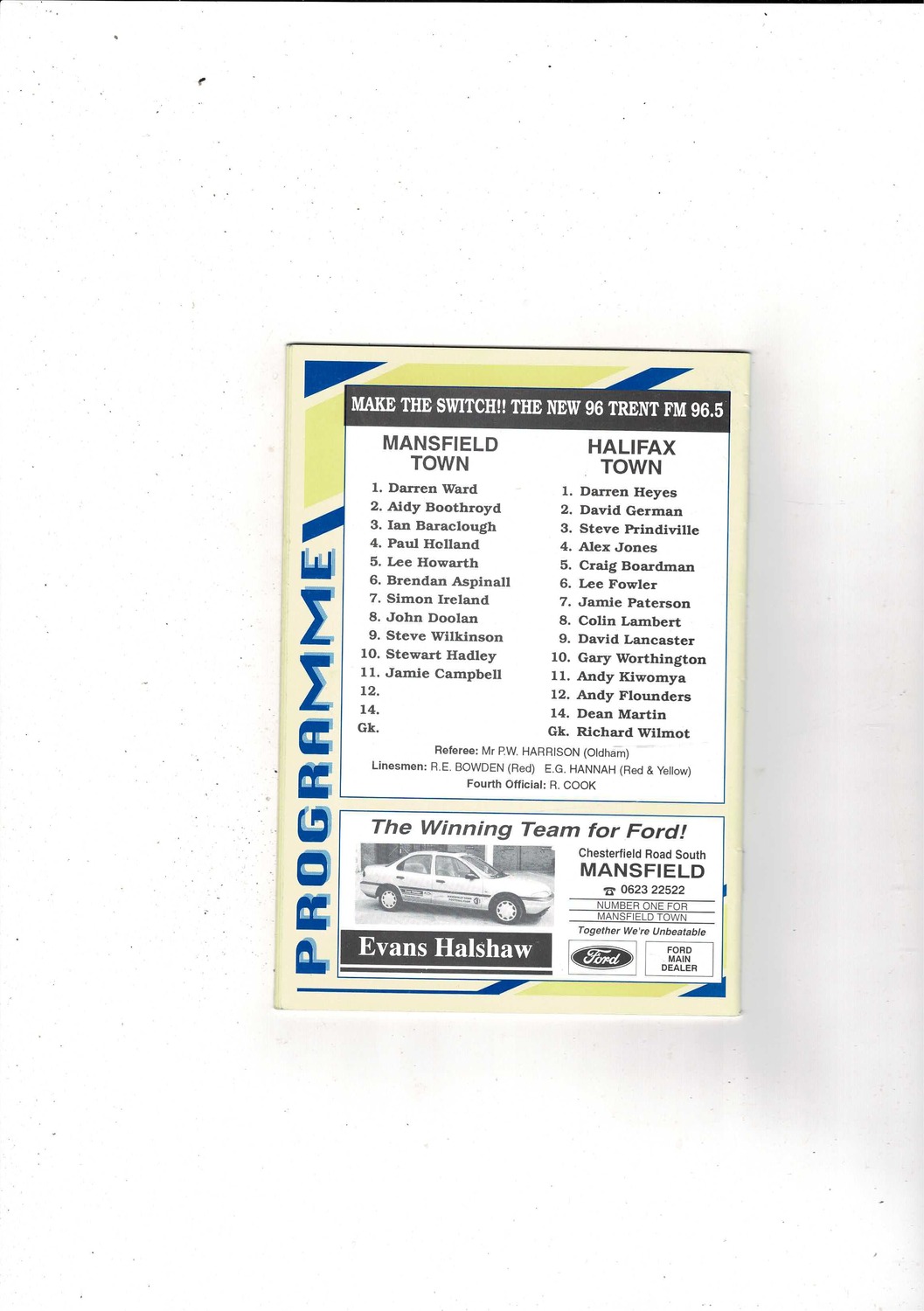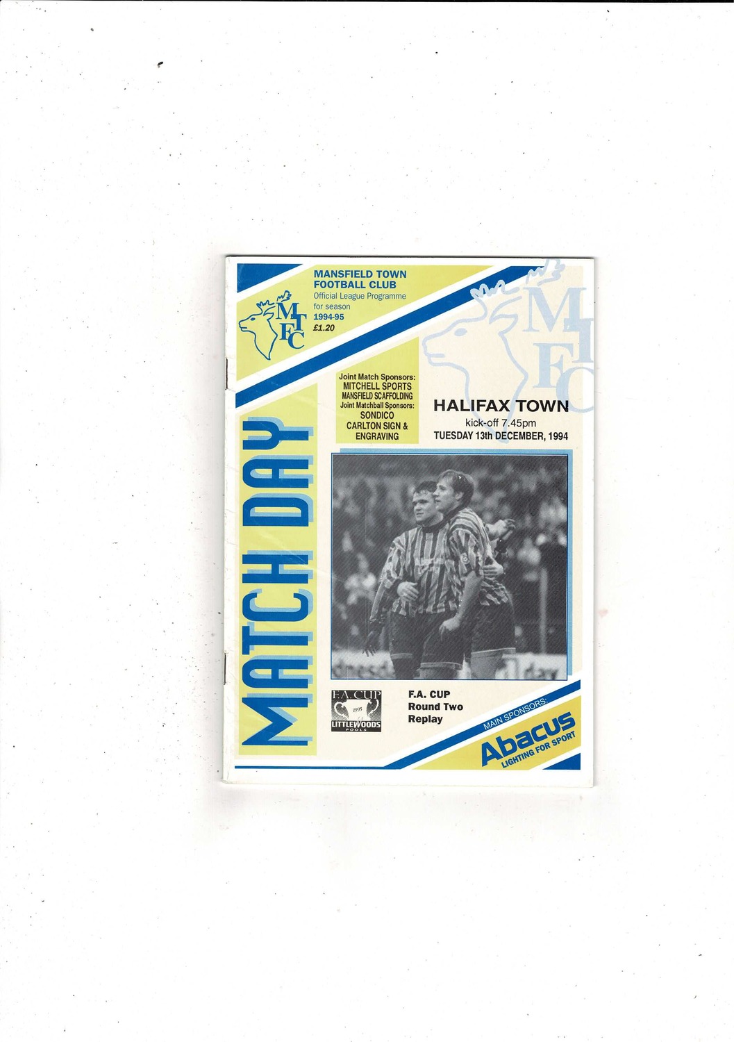 Mansfield Town v Halifax Town FA Cup Replay Football Programme 1994/95