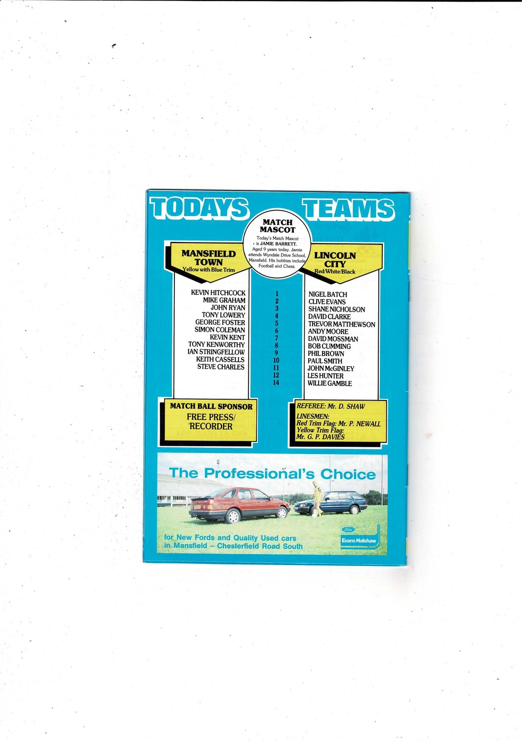 Mansfield Town v Lincoln City FA Cup Football Programme 1987/88