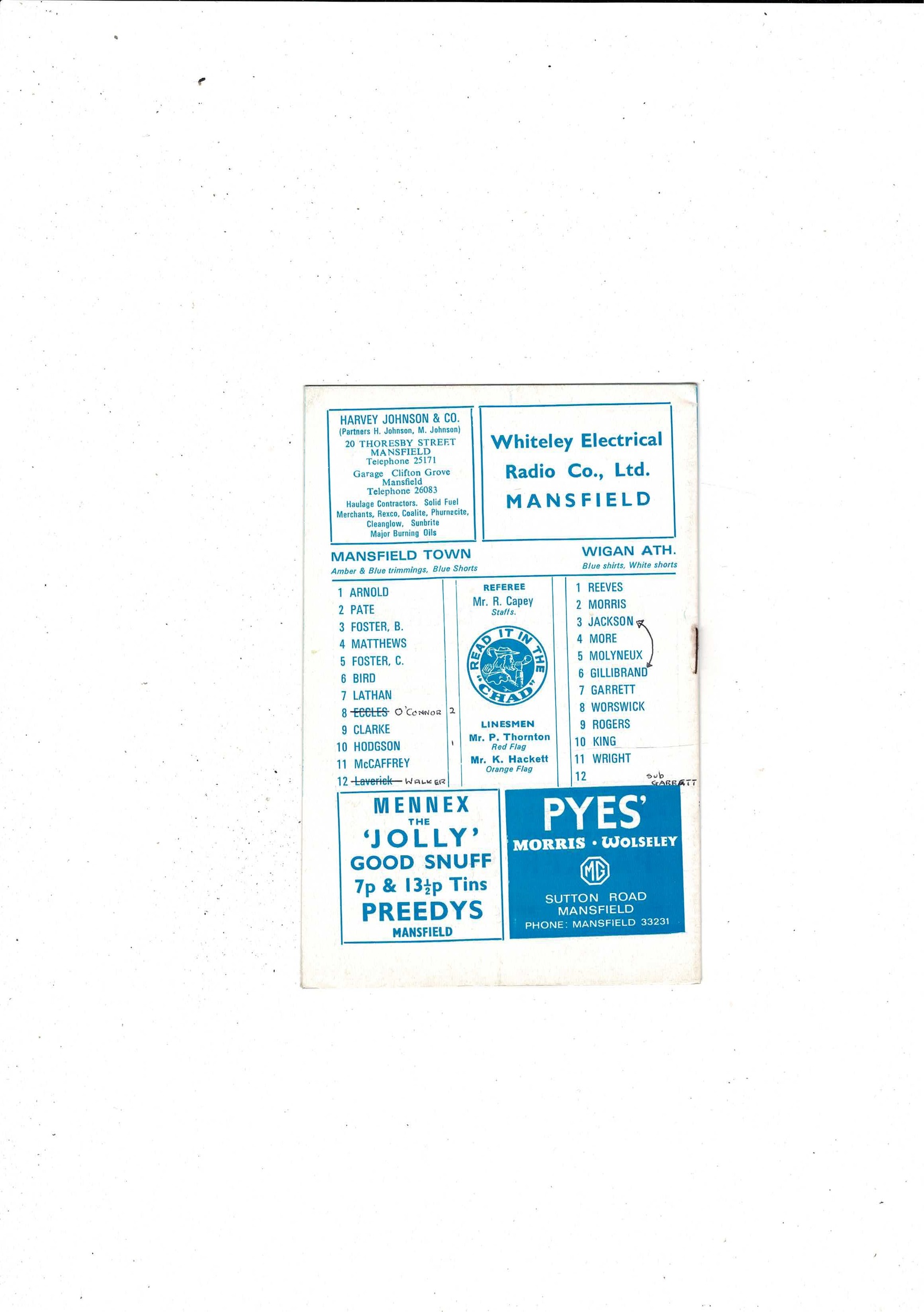 Mansfield Town v Wigan Athletic FA Cup Replay Football Programme 1974/75