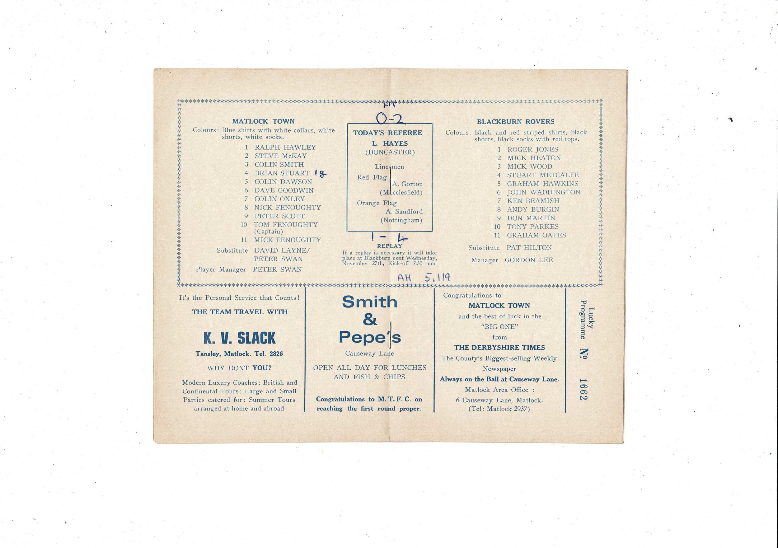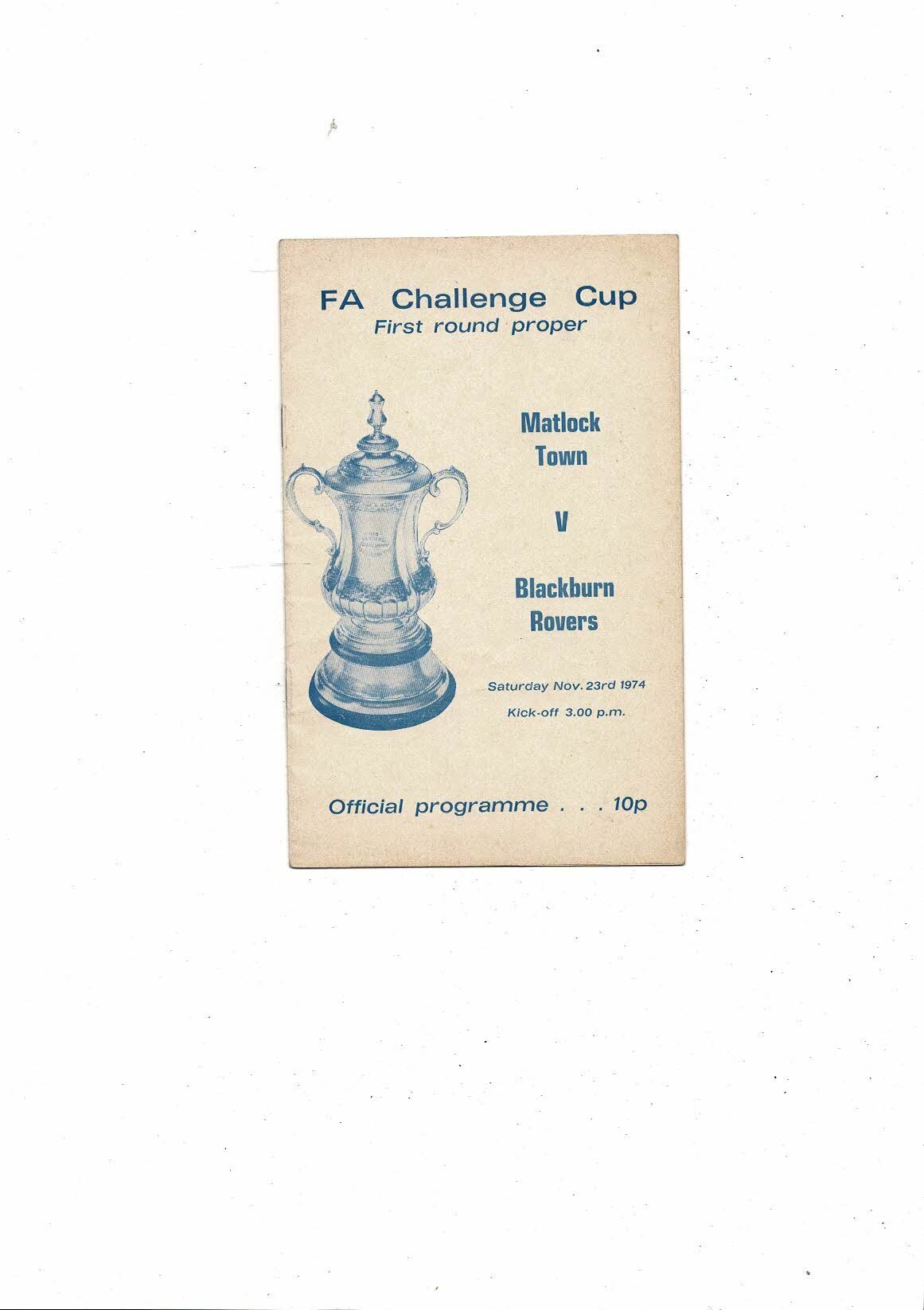 Matlock Town v Blackburn Rovers FA Cup Football Programme 1974/75