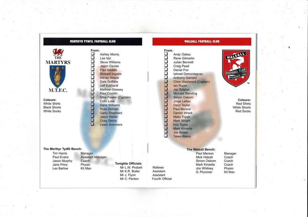 Merthyr Tydfil v Walsall FA Cup Football Programme 2005/06