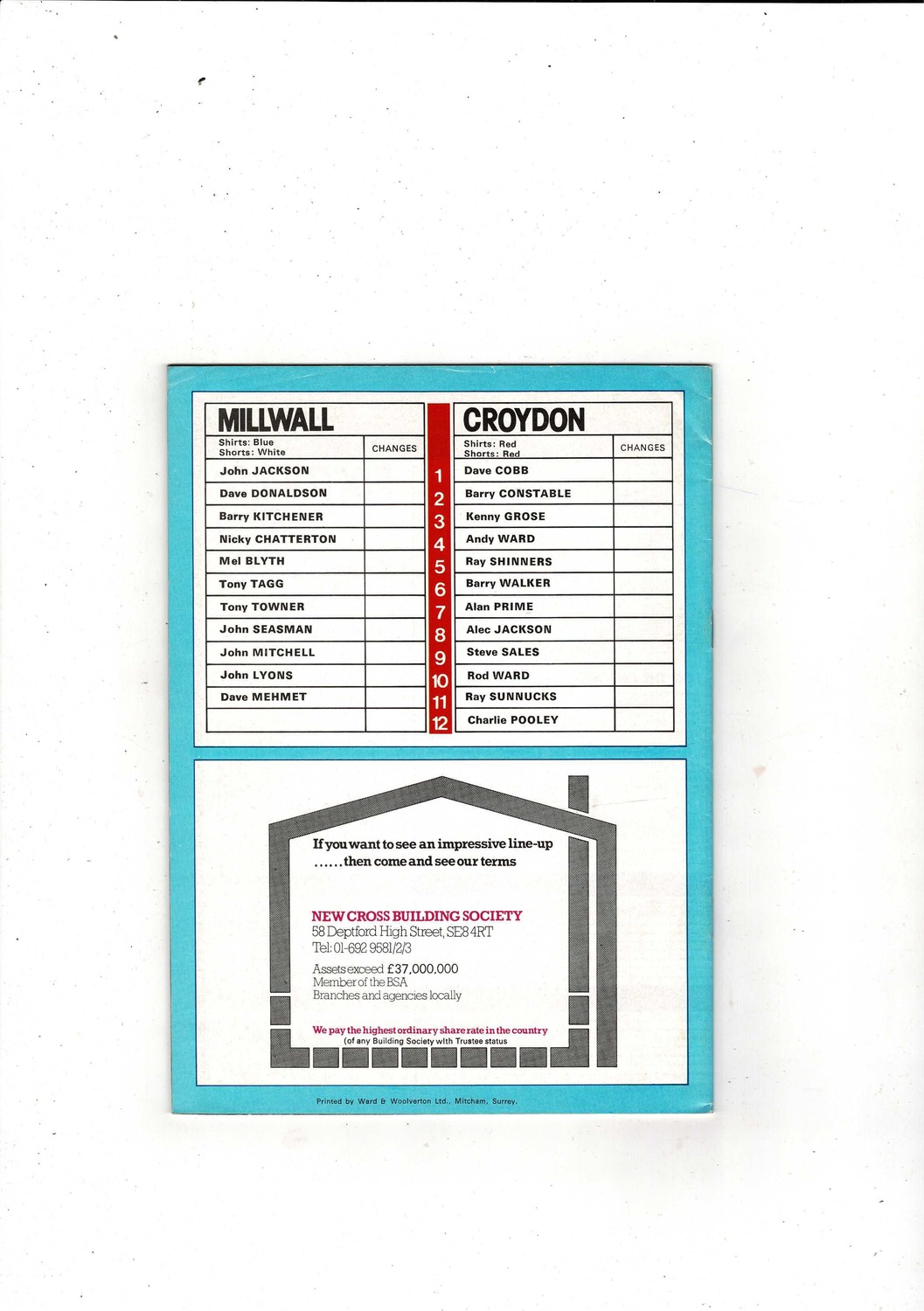 Millwall v Croydon 2nd Round Replay FA Cup Football Programme 1979/80